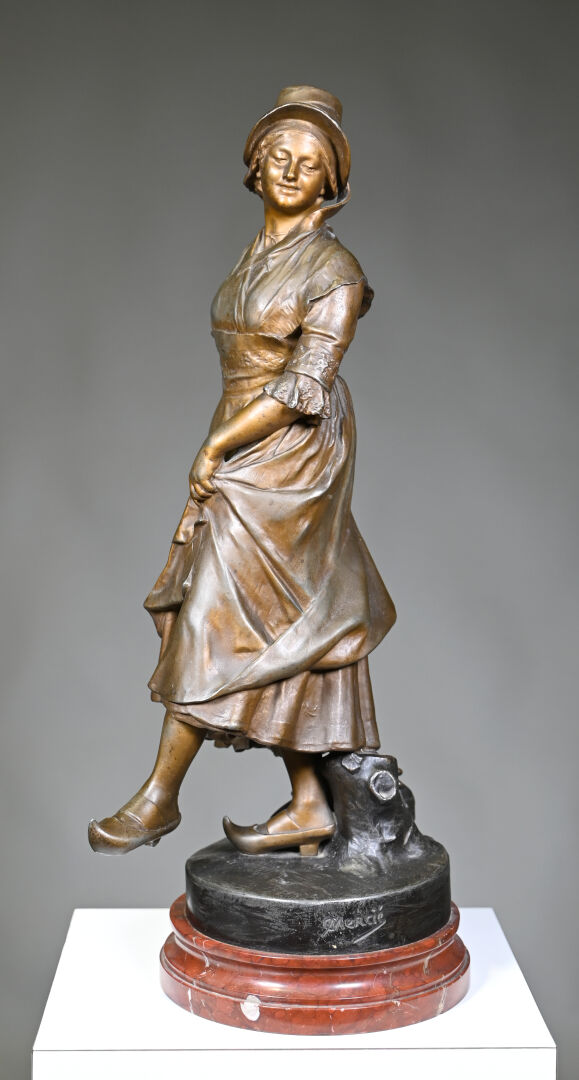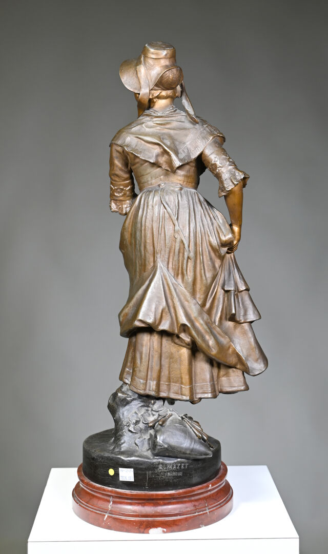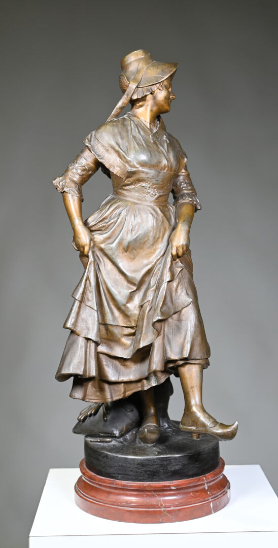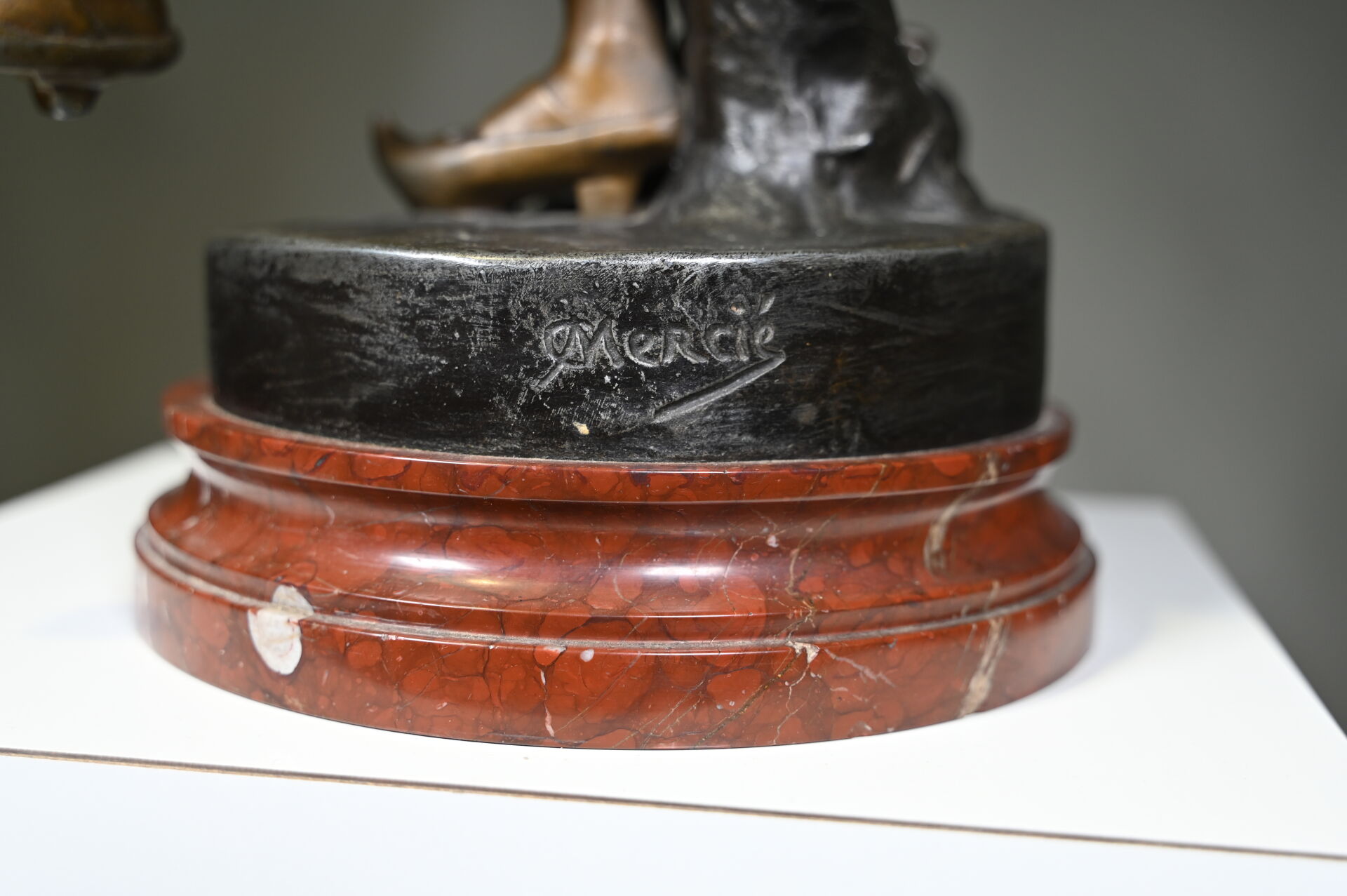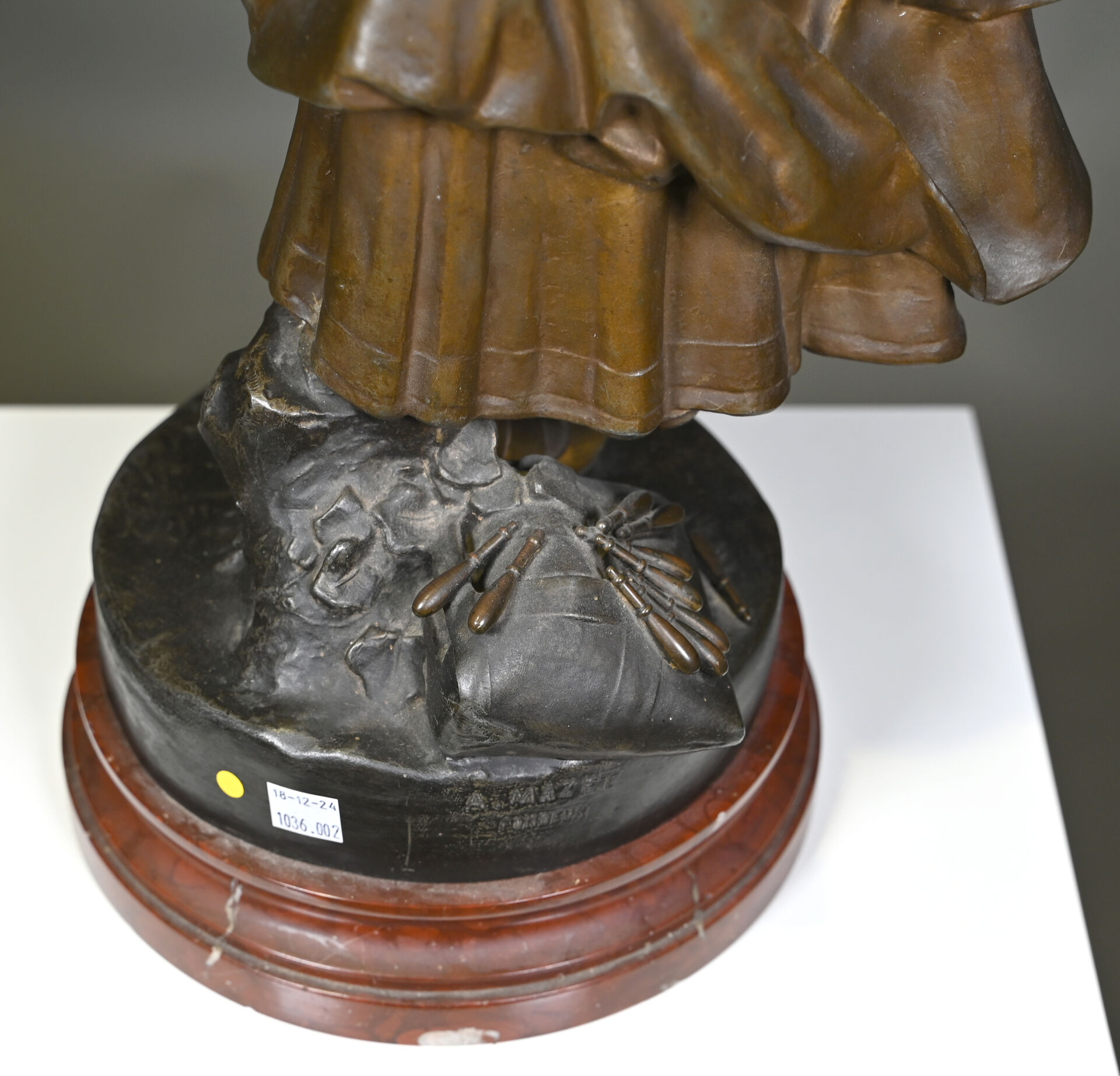 C. MERCIER. Fondeur MAZET. Dentelière provençale en régule, socle de marbre rouge griotte. Signée. Haut.: 67 cm.