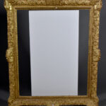 Cadre en bois sculpté doré à la Berrain (éclats et petits manques). Style Louis XIV, XIXe siècle. 101 x 85 cm. Dimensions intérieures : 84 x 66 cm.