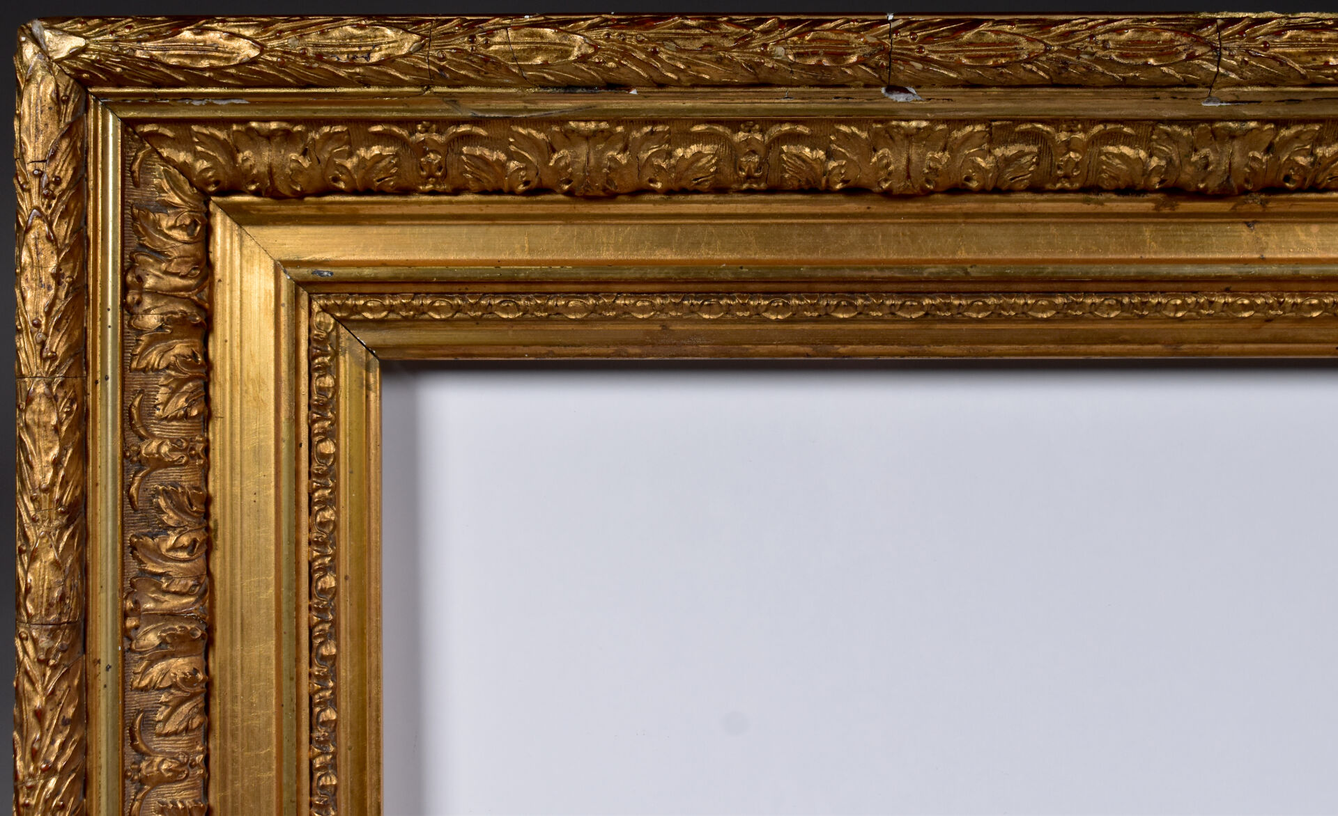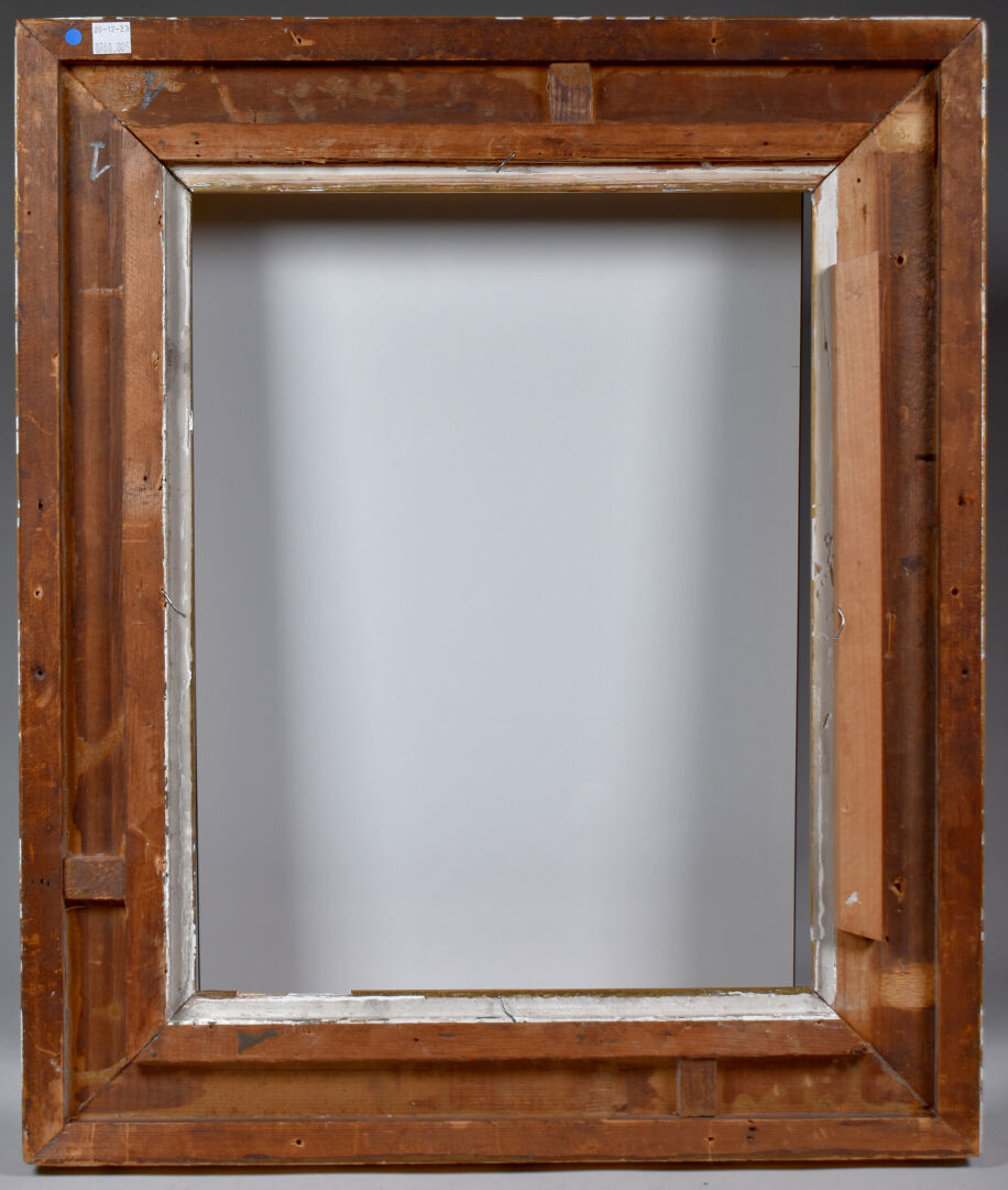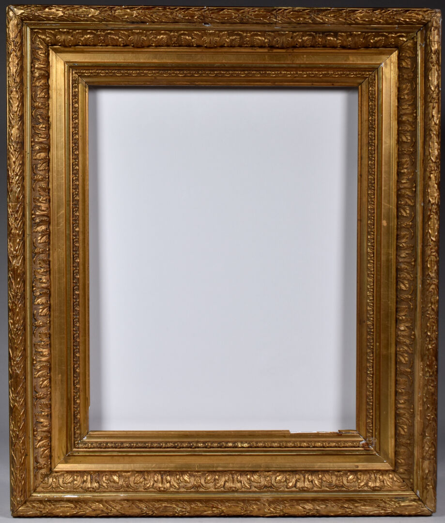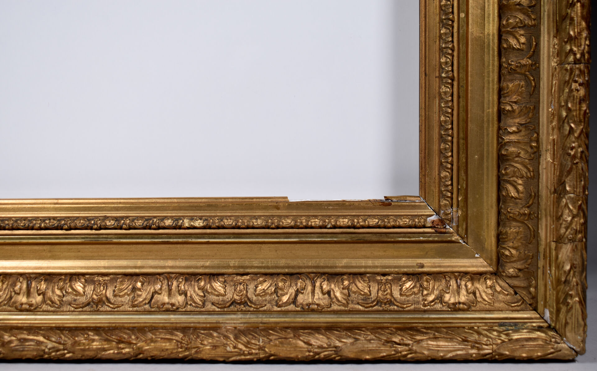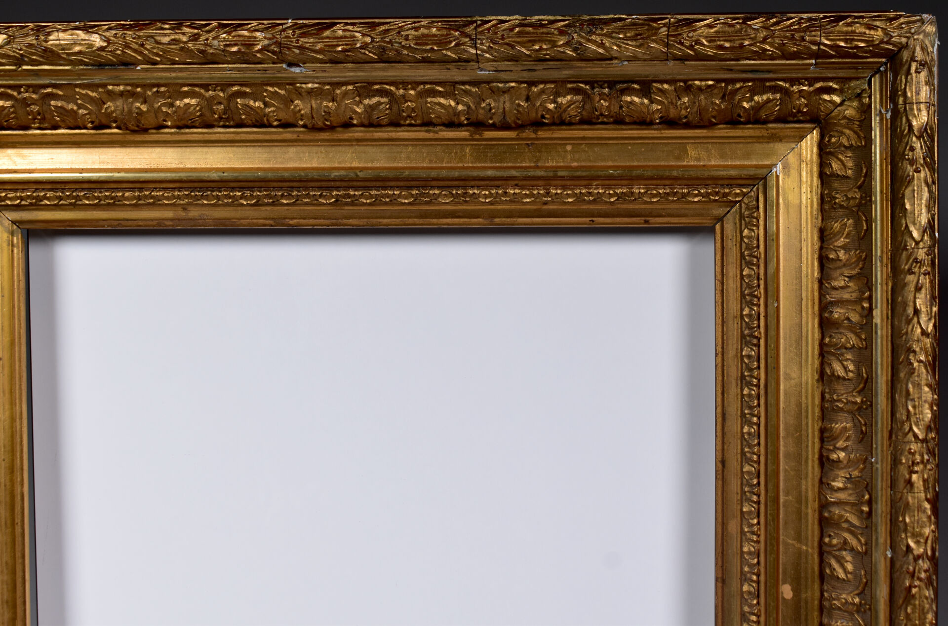 Cadre en bois stuqué doré à décor de feuilles de laurier et acanthes (égrenures). Vers 1900. 53 x 62 cm. Dim à la feuillure (intérieur du cadre.: ).