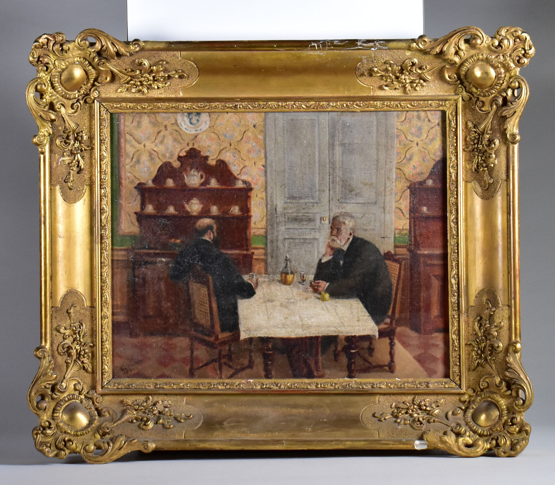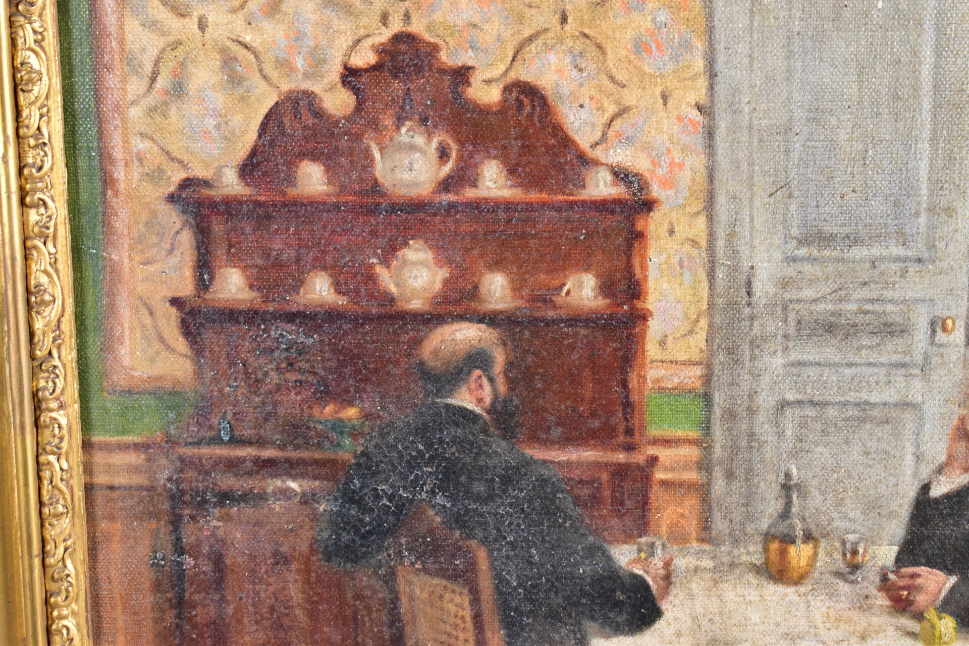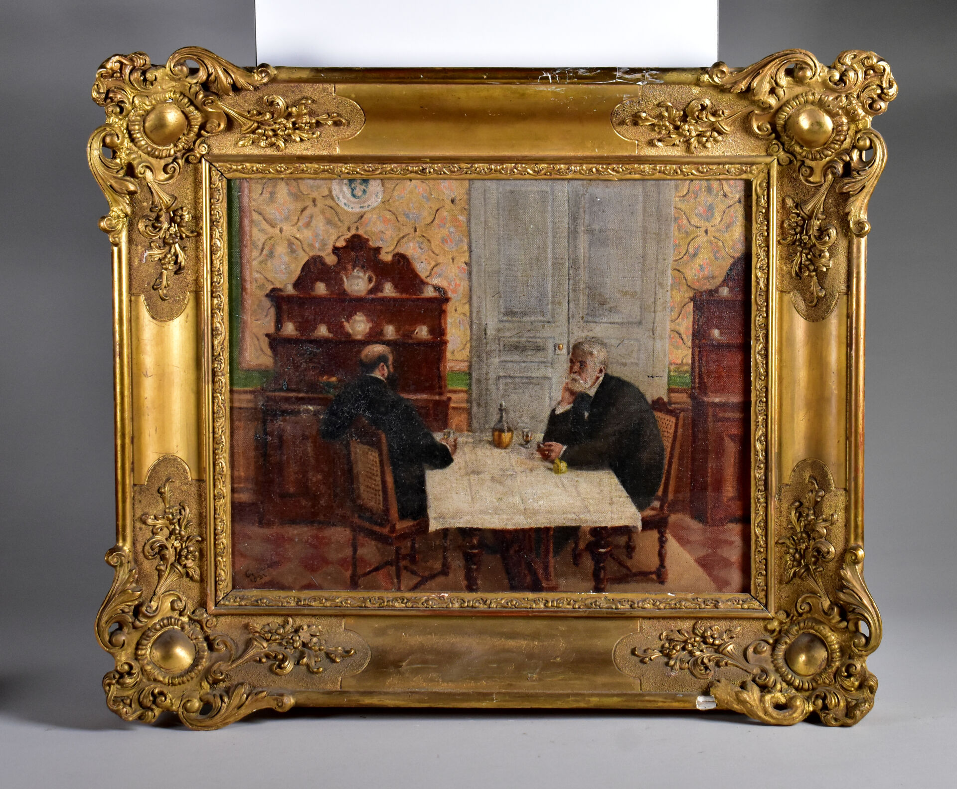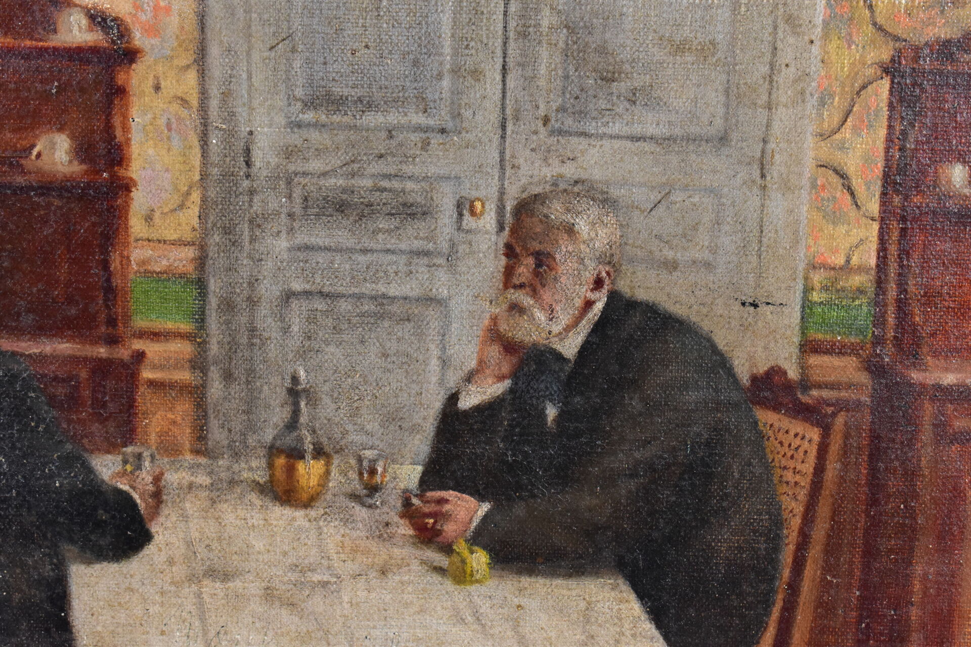 Camille OURNAC (XIXe-XXe siècle). Le verre de liqueur. Huile sur toile signée et datée 1892 en bas à gauche. 33 x 41 cm.