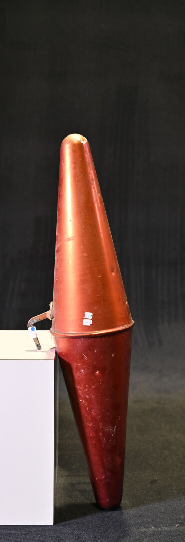 Carotte de tabac en cuivre peint rouge (enfoncements et usures). Haut. : 83 cm.