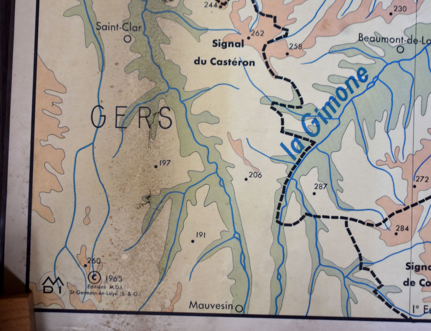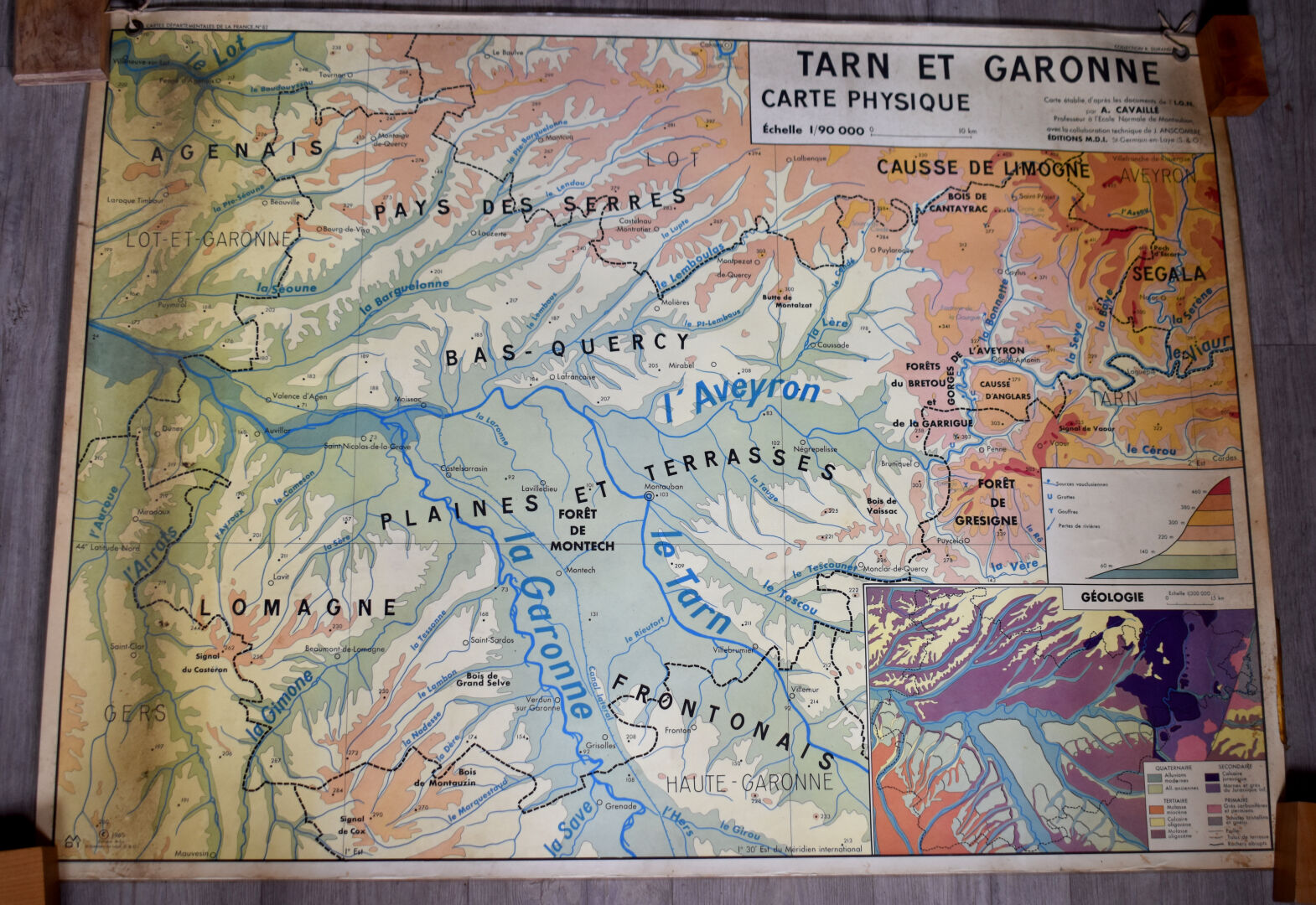 Carte scolaire plastifiée du Tarn et Garonne (usures). Editions MDI 1963. 93 x 126 cm.