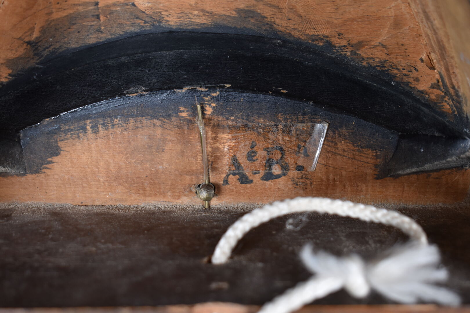 Cartel d’applique et cul de lampe en bois laqué noir à décor peint de fleurettes en beige et dorure. Cadran émaillé à chiffres romains pour les heures. Neuchâtel, première moitié du XIXe siècle. Mouvement révisé récemment. Haut. 93,5 cm (avec console).