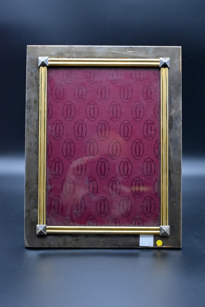 CARTIER. Cadre rectangualaire en métal doré et argenté (enfonceùment à un angle). Signé et daté 1988 enbas à droite. 29,7 x 23 cm.