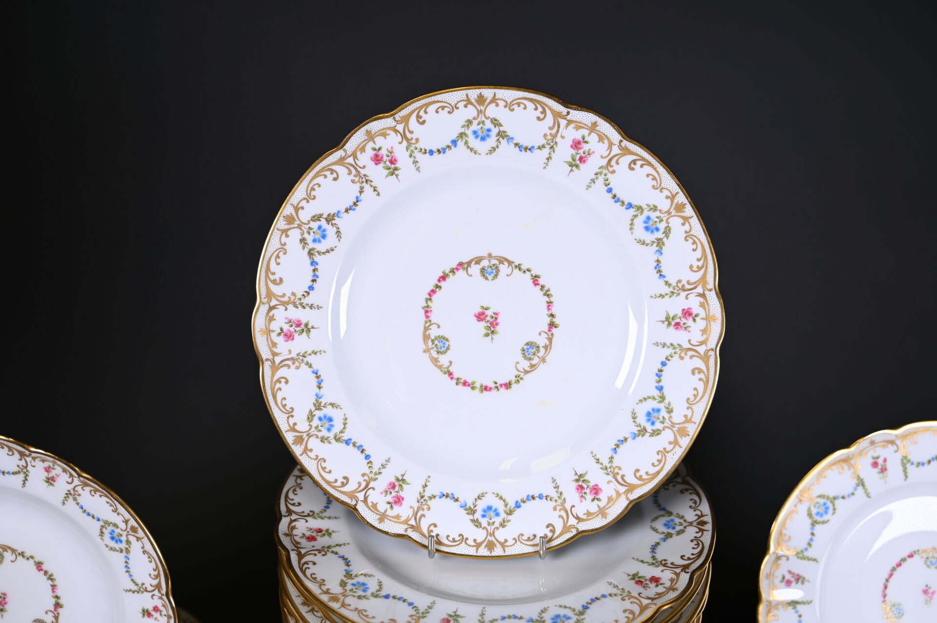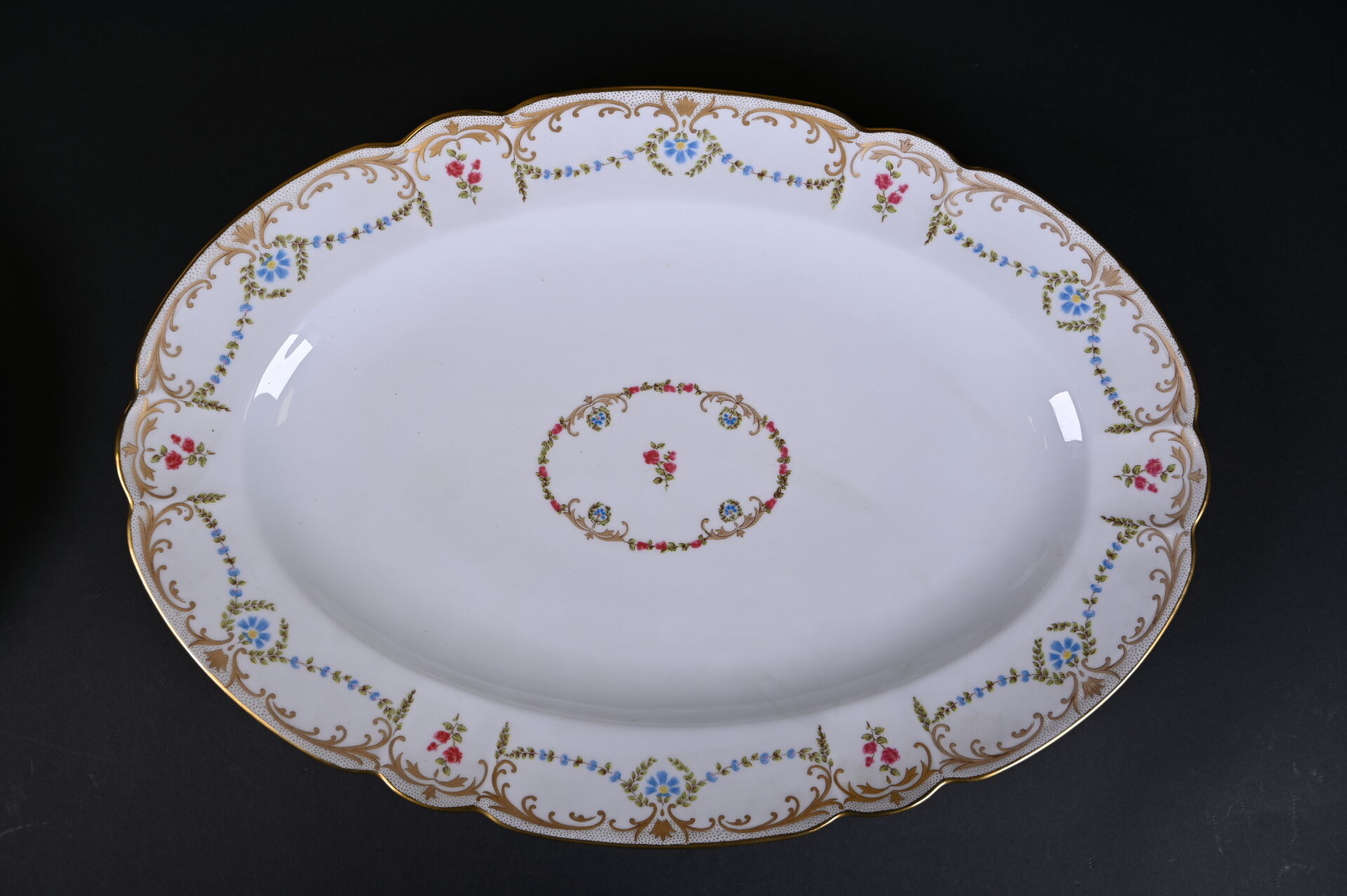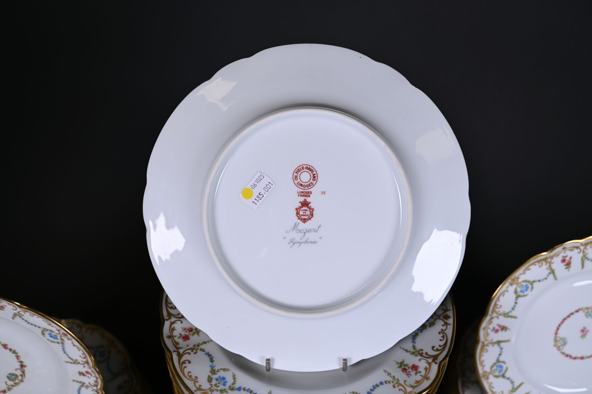 CH.FIELD.HAVILAND. Partie de service de table en porcelaine modèle « Mozart » comprenant 1 plat de service ovale, 1 plat de service rond, 24 assiettes plates, 12 assiettes creuses et 12 assiettes à entremets. Marquées.