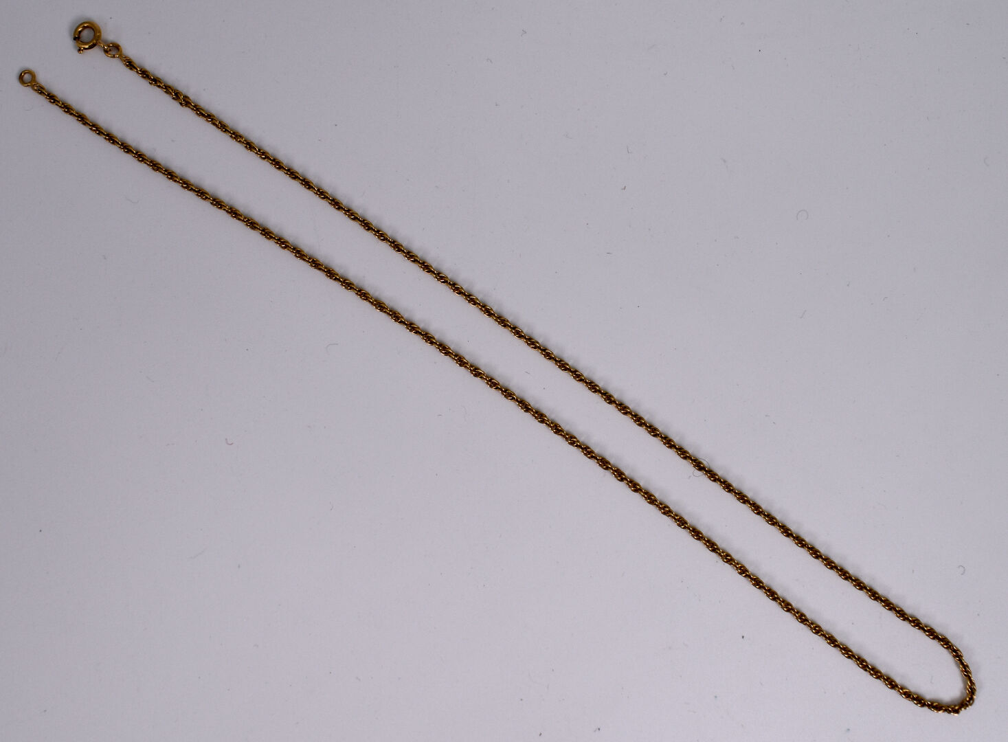 Chaine en or 18K 750/1000e à maille corde. Long. : 45,5 cm. Poids : 6,2 g.