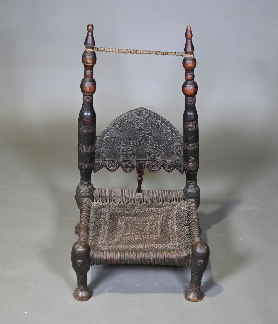 Chaise basse en cèdre, région du Nouristan, Afghanistan. Haut. : 75 cm.