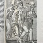 CHALCONDYLE (L.). HISTOIRE GÉNÉRALE DES TURCS, contenant l’histoire de Chalcondyle, traduite par Blaise de Vigenaire. P., Augustin Courbe, 1662. Deux volumes in-folio basane brune, dos à nerfs orné, tranches mouchetées en rouge (Reliure de l’époque). Tome I : (12) ff. dont faux-titre, titre-frontispice, titre en rouge et noir, épitre, etc., 1 planche double (Vue de Constantinople), 903 pages – Tome II : (6) ff. de faux-titre, titre-frontispice, titre en rouge et noir, épitre et privilège, 207 pages [la dernière faussement paginée 185], (1) page de faux-titre, 186-203 pages, (1) page, (6) ff. de table, (2) ff. de faux-titre et sommaires, 89 pages, (3) pages de table, 1 planche double, 64 ff., (1) f. de faux-titre, 67-116 pages, (3) pages de table, 85 pages, (10) pages de table, 273 pages [pagination à 2 colonnes par page, mal chiffrées], (30) pages de table. ÉTAT DE LA RELIURE : mors en partie fendus, coiffes manquantes, coins ouverts – ÉTAT DU CORPS D’OUVRAGE : cernes de mouillures, déchirures et petits manques de papier sans atteinte au texte, manque angulaire au faux-titre du t. I avec atteinte à une lettre, manques de quelques mots sur une page de l’Extrait des registres du conseil [suite du Privilège], nombreuses pages cornées, inversion au t. I de 2 ff. (pp. 881 et 883), les 2 planches hors-texte contiennent des déchirures mais apparemment sans manque, mouillures à la Vue de Constantinople. Tampon encré armorié non identifié au verso du titre-frontispice des deux tomes. ÉDITION EN PARTIE ORIGINALE et LA PLUS COMPLÈTE de l’importante Histoire des Turcs de l’historien byzantin du XVe siècle Laonicus Chalcondyle (c.1423-1490), traduite et publiée pour la première fois en français en 1577 par Blaise de Vigenère en un volume in-4. Elle contient un BEAU TITRE ILLUSTRÉ répété en frontispice de chaque tome, 24 PORTRAITS gravés sur cuivre dans le texte, 80 GRAVURES à pleine page comprises dans la pagination et 2 PLANCHES à double page hors-texte (Vue de Constantinople et Portraict de l’armée de l’Empereur Turc rangée en bataille). EXEMPLAIRE défraichi mais complet, qui nécessiterait de nombreuses restaurations papier pour les déchirures. ¶ Hage-Chahine, 862.