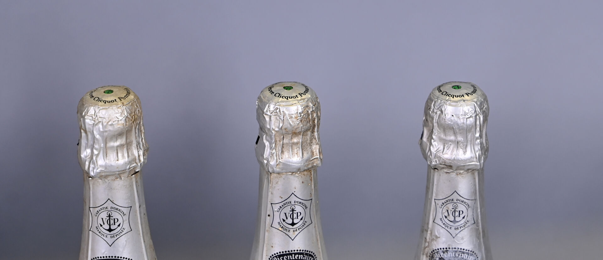 1 bouteille, Champagne, Veuve Clicquot Ponsardin, Brut. Coiffe et étiquette légèrement sale.