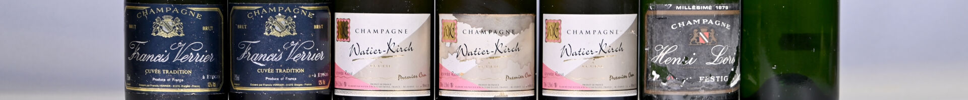 3 bouteilles, Champagne 1er Cru, Watier-Hirch, Cuvée Rosé, Brut. Etiquettes légèrement sales dont une est tachée.