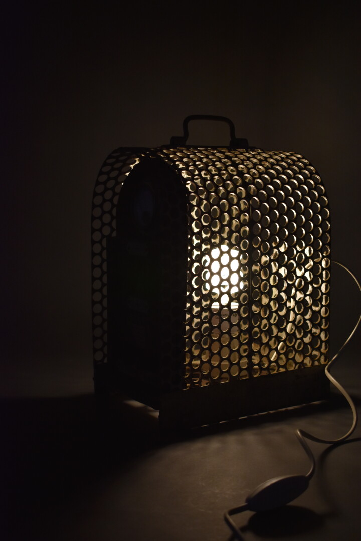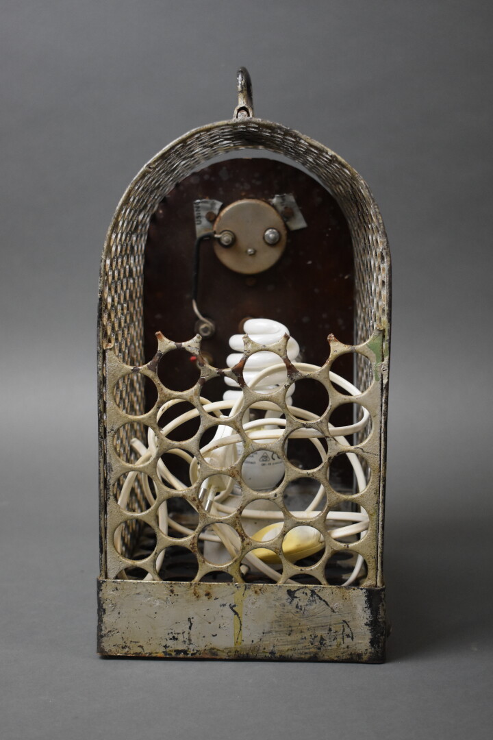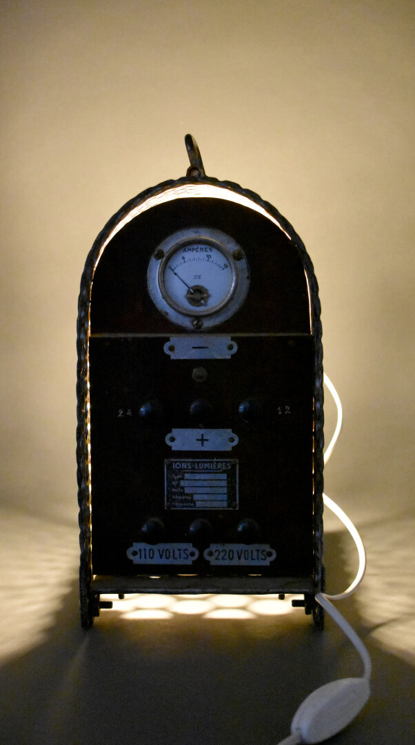 Chargeur de baterie IONS-LUMIERES début du XXe siècle monté en lampe électrique. Haut. : 31 cm.