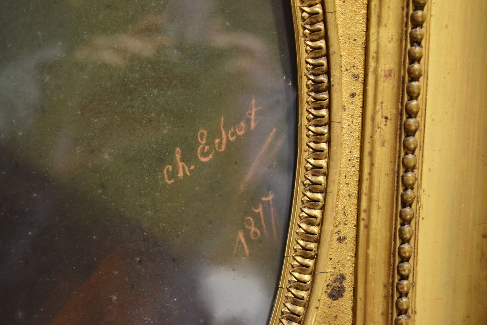 Charles ESCOT (1834-1902). Portrait de M. FEREOL ROUDAT. Pastel à vue ovale signé et daté 1877. 62,5 x 52 cm.
