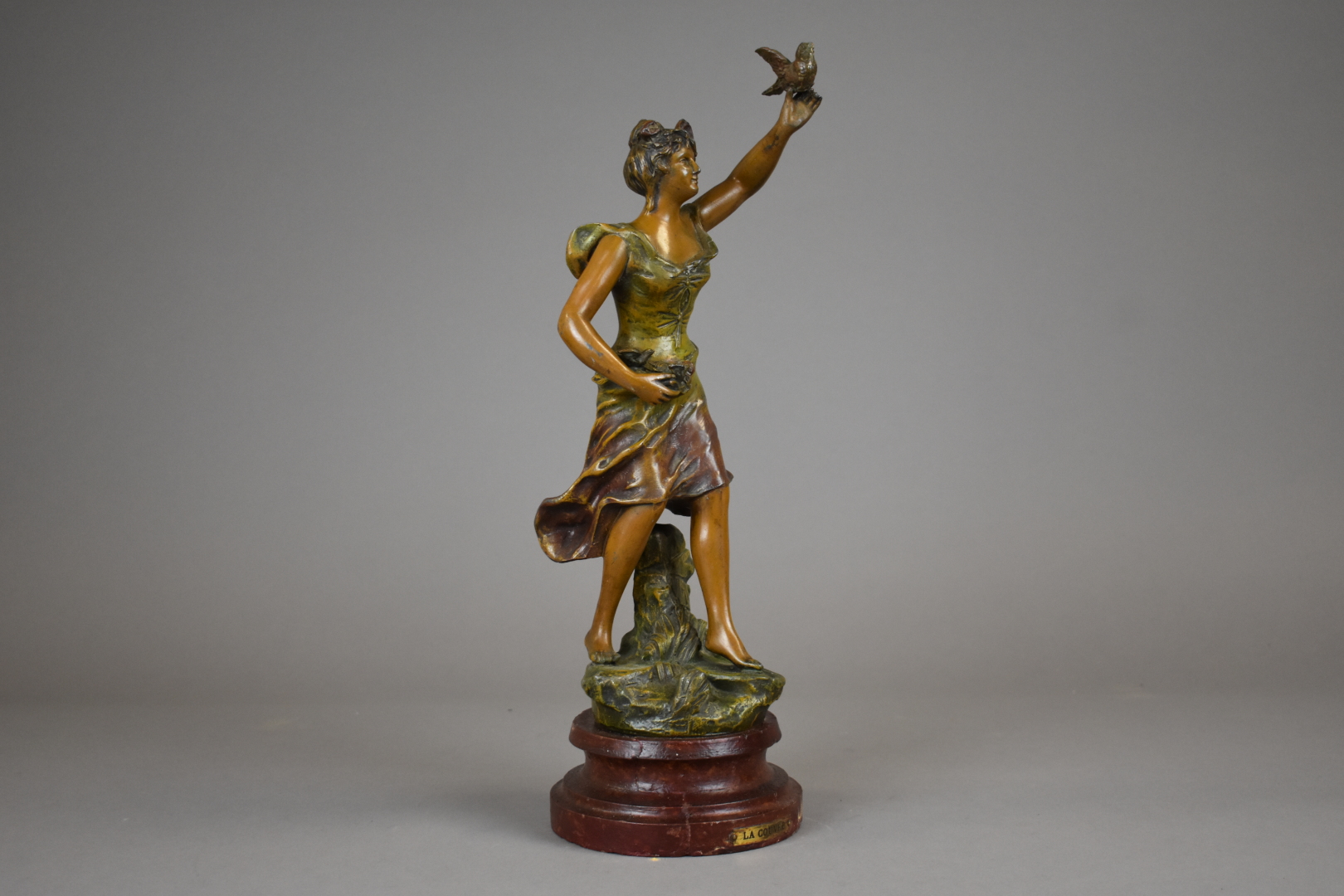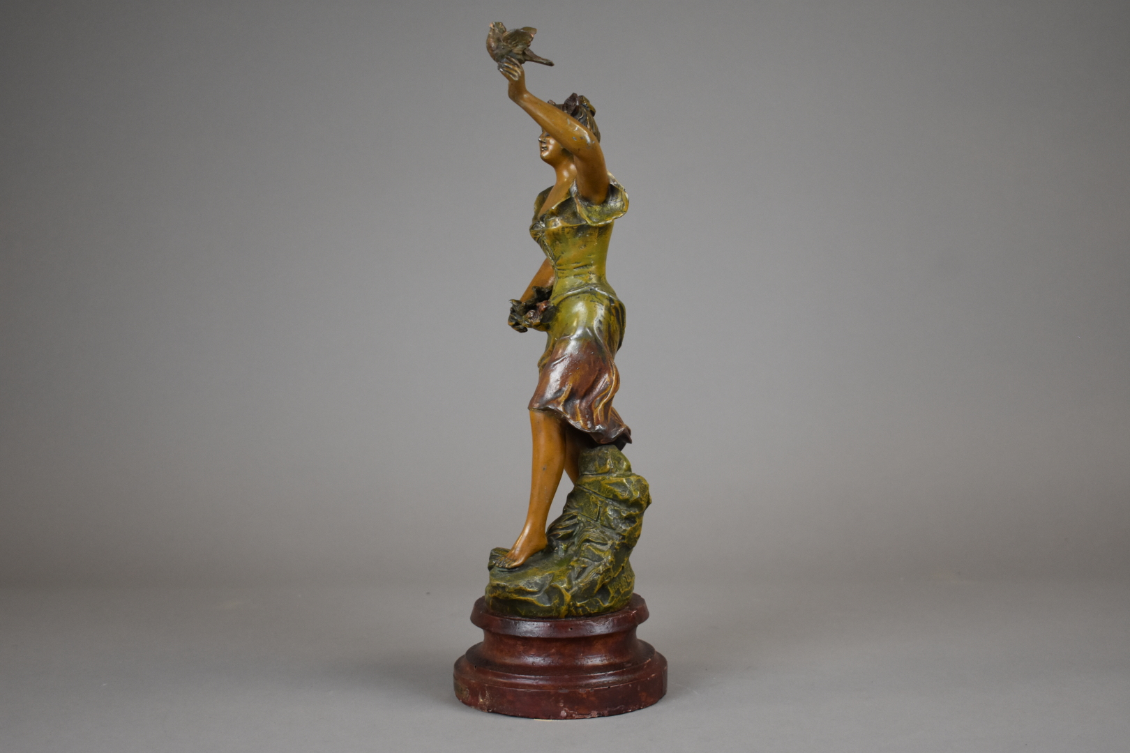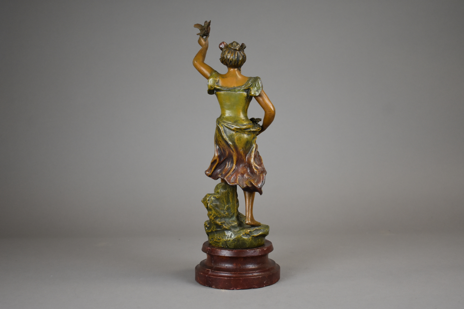 Charles RUCHOT (act.1880-1925). « La couvée ». Régule à patine polychrome (accident au socle). Haut. : 42,5 cm.