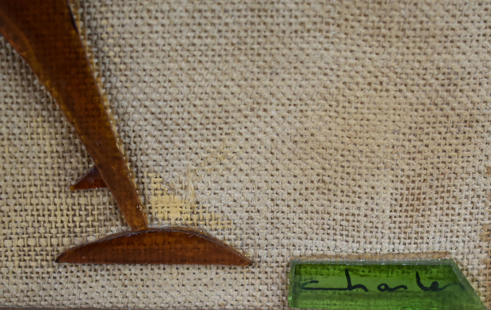 CHARLES (XXe siècle). Coq en verre découpé sur un panneau. Signé en bas à droite. Vers 1950 / 1960. 66,5 x 47 cm.