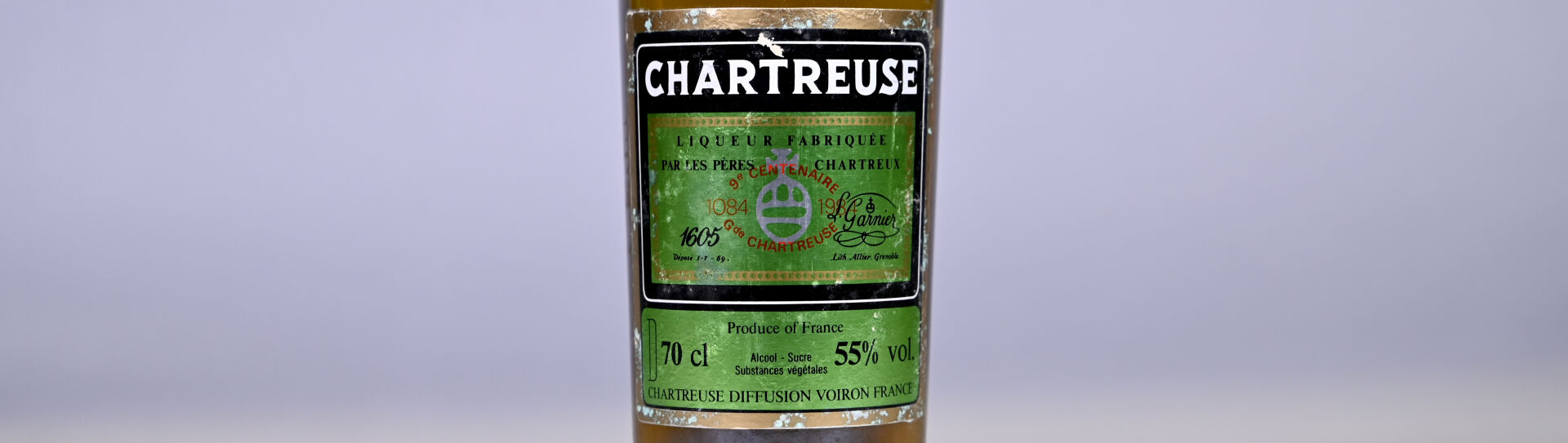 CHARTREUSE – 1 bouteille, Chartreuse Verte, Liqueur du 9ème Centenaire, 1084-1984, Voiron. Capsule avec des traces. Etiquette légèrement sale à sale avec quelques traces d’oxydation et de frottement.