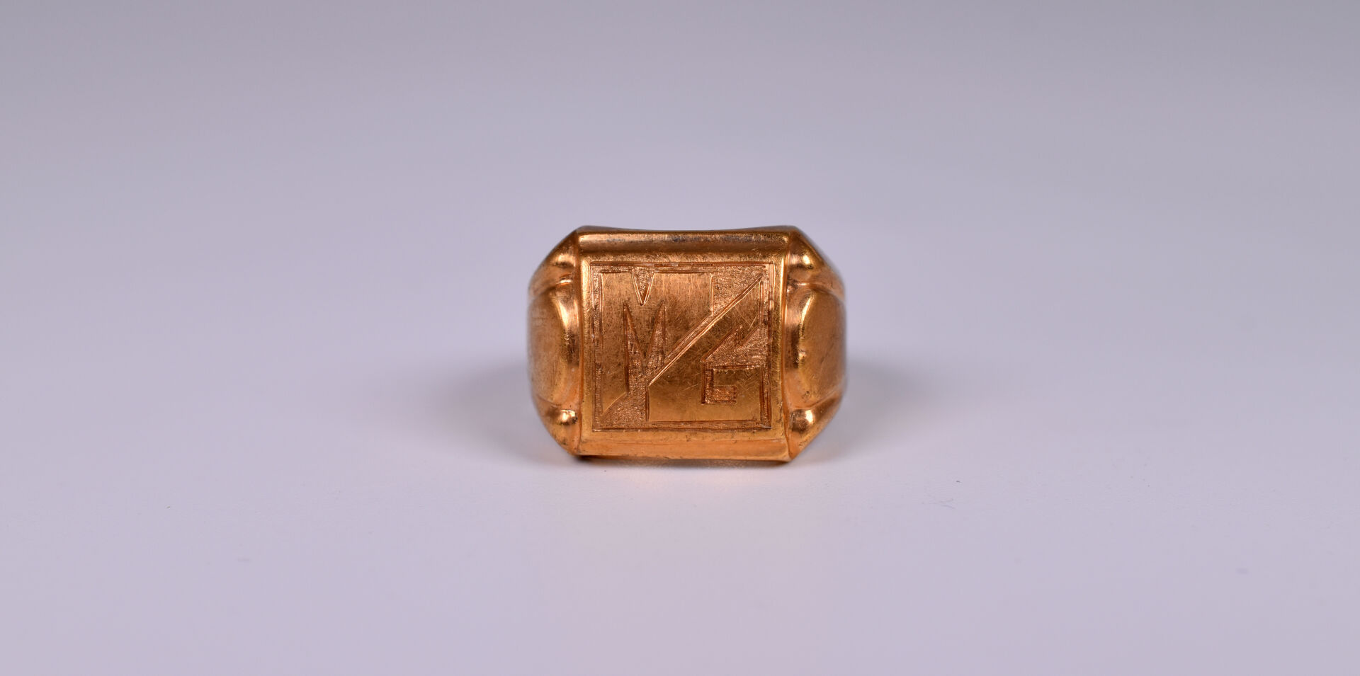 Chevalière à chaton monogrammé MG en or 18K 750/1000. TDD 56. Poids : 4,3 g.
