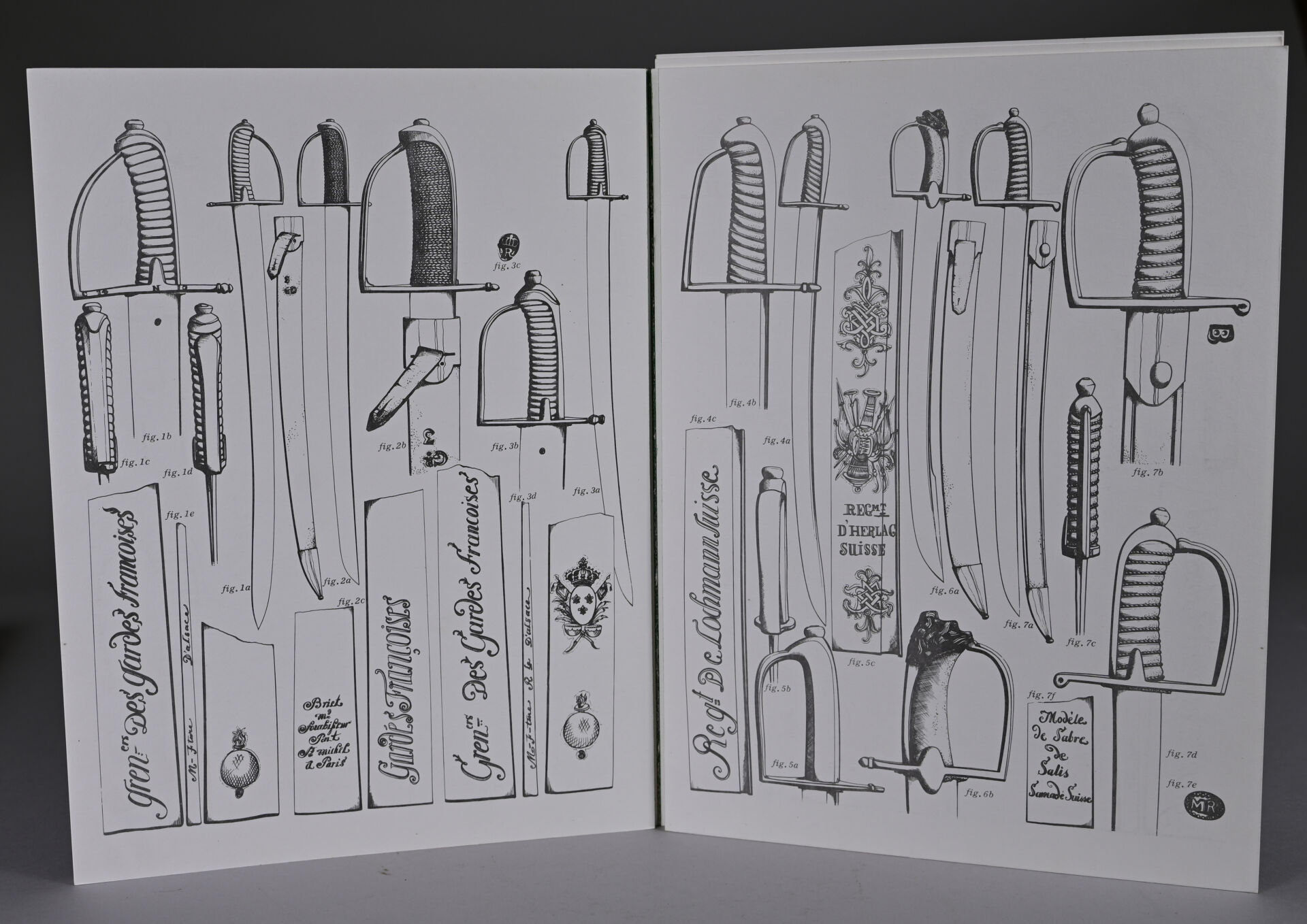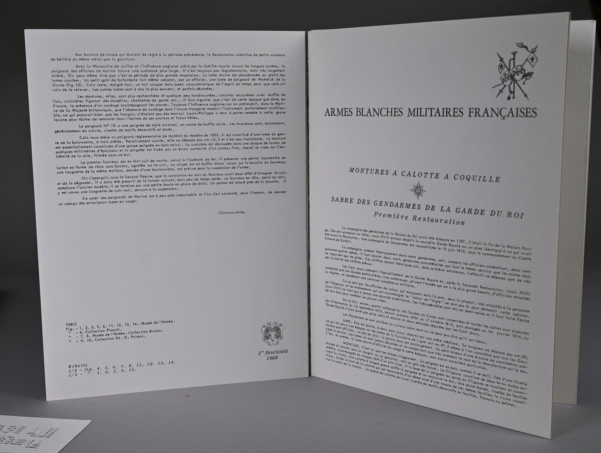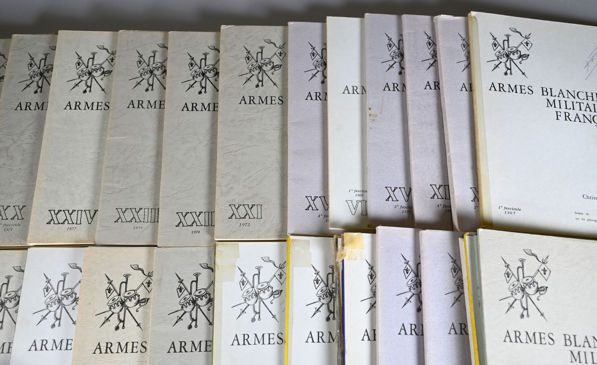 Christian ARIES. Les Armes Blanches Militaires Françaises. Avec dessins de Michel PETARD et photographies de Christian ARIES . Années 1967 à 1985 ( état moyen). On joint L’armée française ses uniformes – son armement – son équipement – Artillerie à cheval 1804 -1815 et Cavalerie ordonnance de 1750. (11 fascicules et 18 jaquettes)