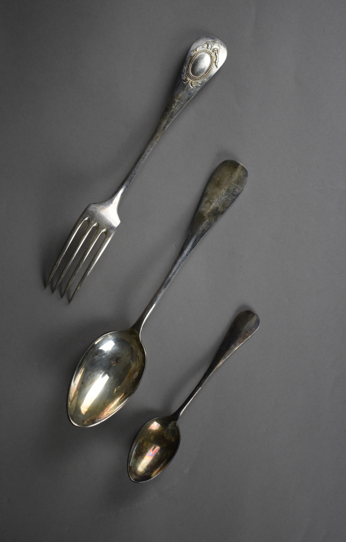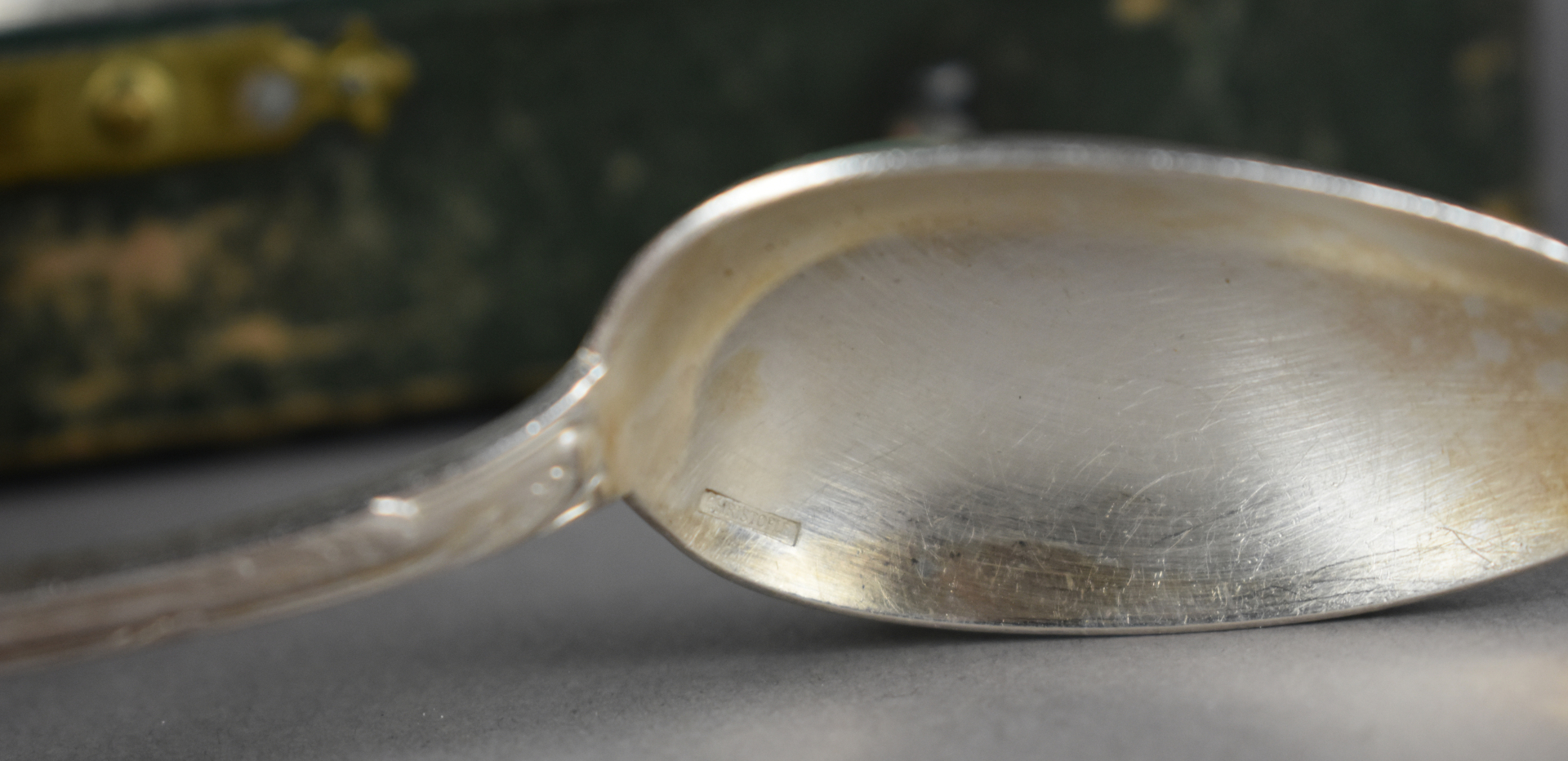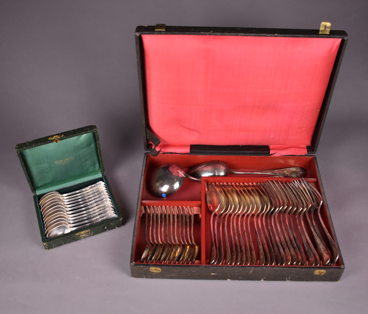 CHRISTOFLE et RAVINET D’ENFERT. Douze petites cuillères (Christofle) et une ménagère (Ravinet d’Enfert) en métal argenté. Boîtes.