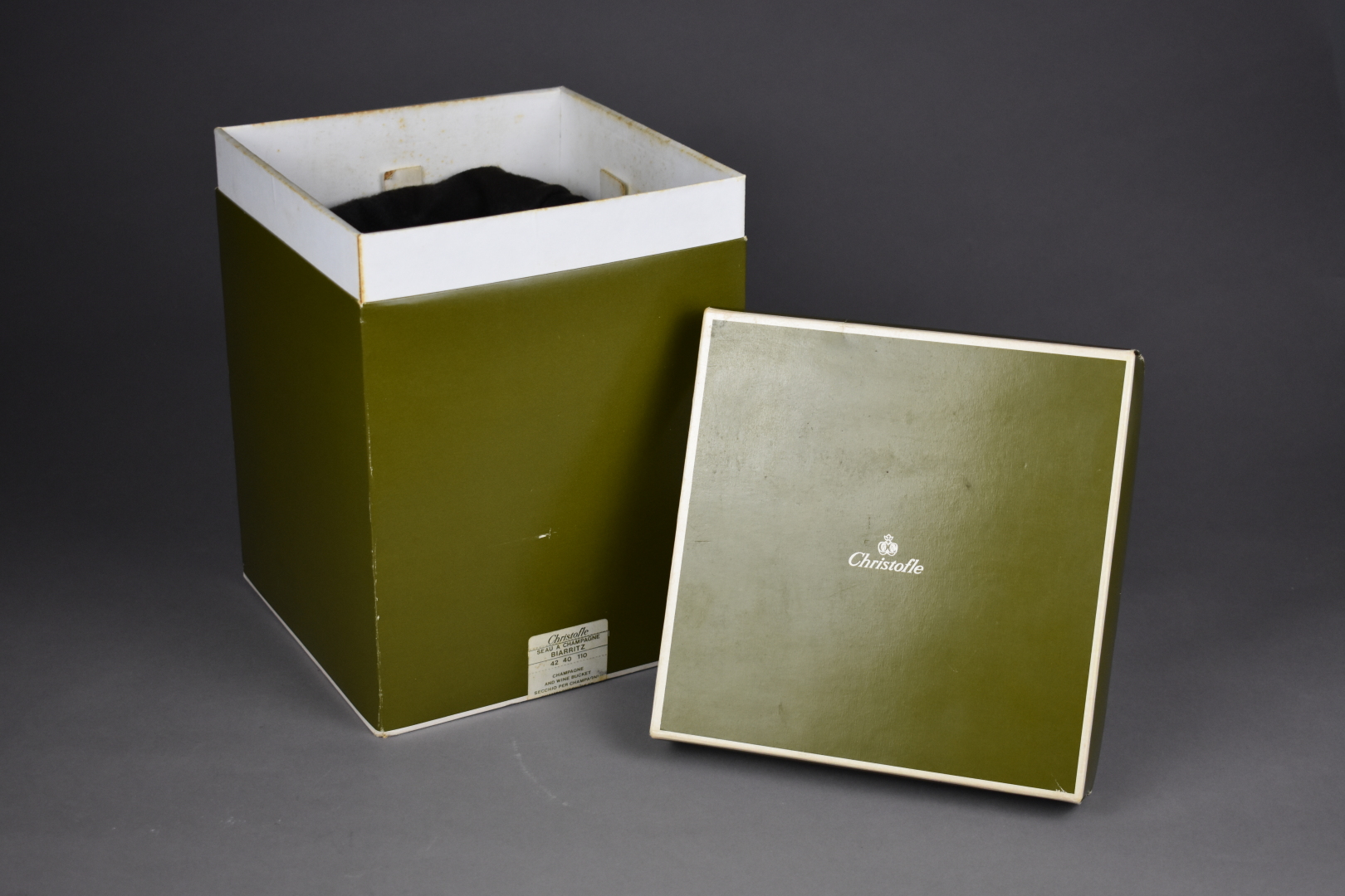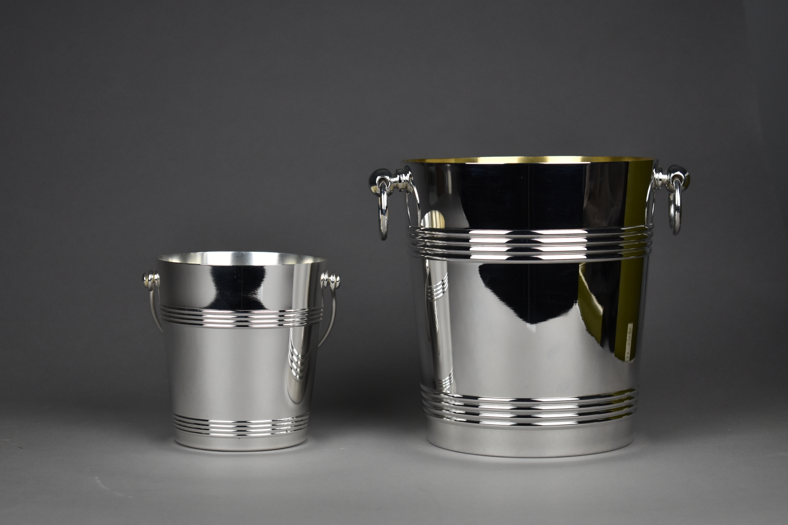 CHRISTOFLE. Seau à champagne et un rafraîchissoir à bouteille, modèle Biarritz, en métal argenté. Le plus grand avec intérieur doré. Boîte. Dimensions du seau à champagne : Haut. : 20,5 cm – Diam. : 23 cm.