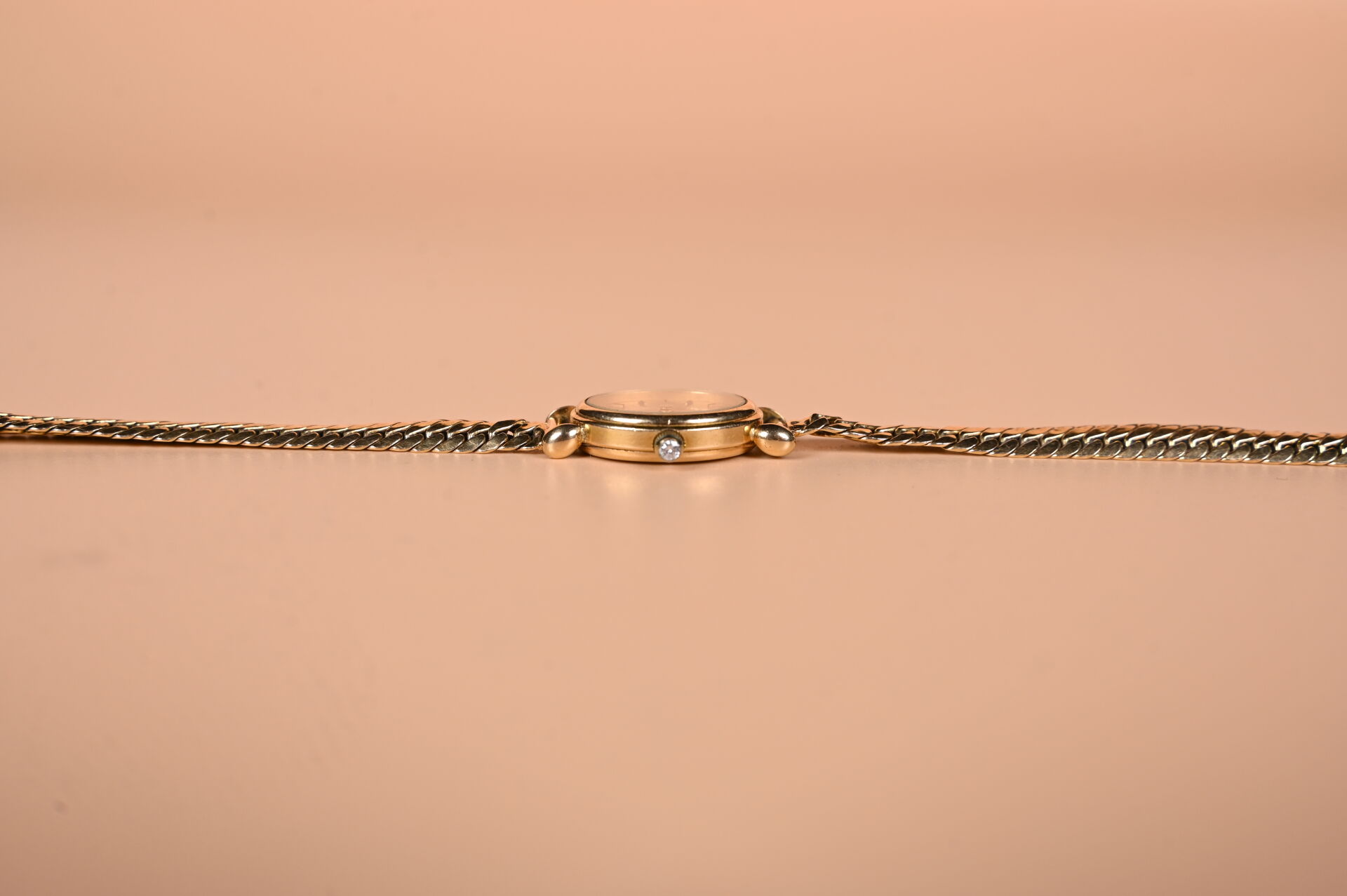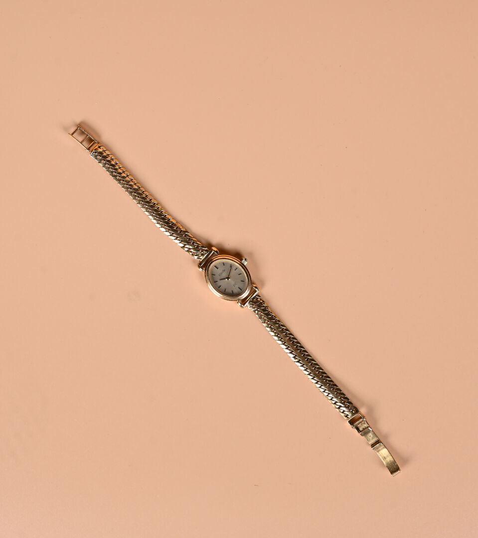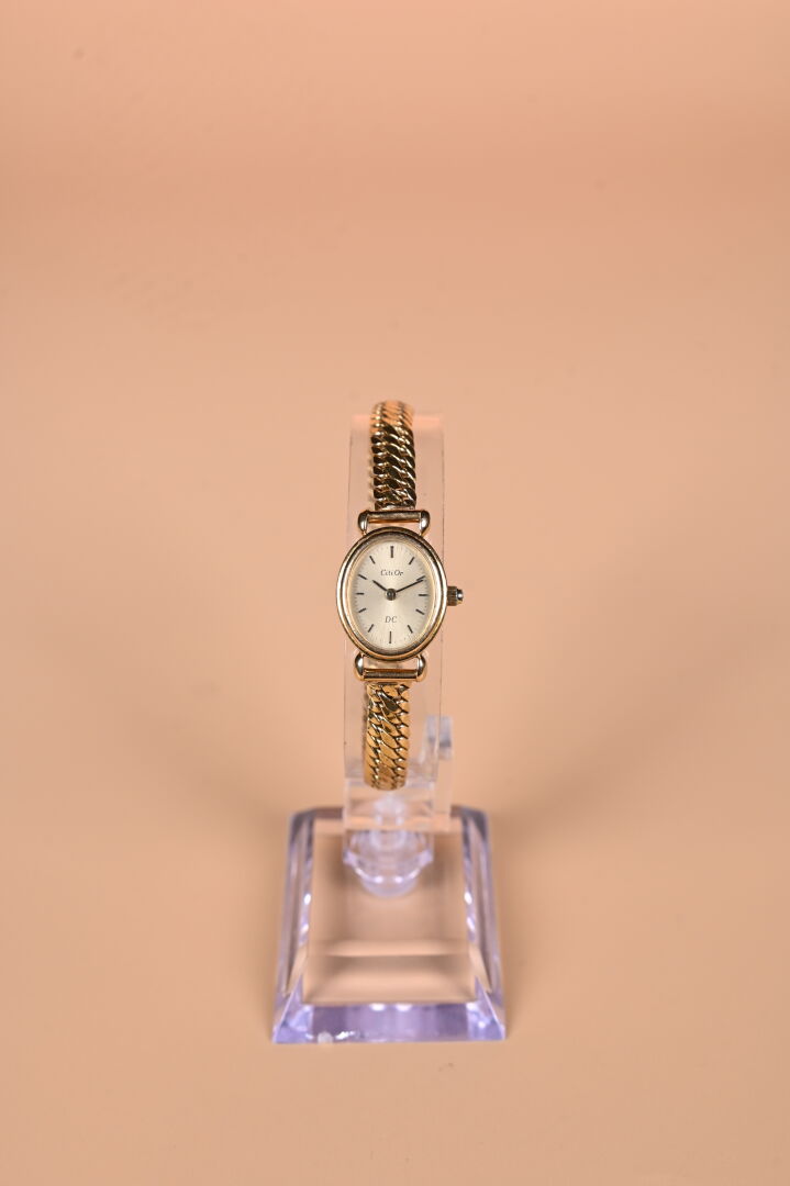 CITI OR. Petite montre bracelet en or jaune 18K 750/1000e, boitier baignoire, bracelet or, remontoir garni d’un petit diamant. (déformations au bracelet). Cadran signé Citi Or DC, boitier numéroté JL2070 8903310. Poids brut. : 16,45 g. Ne fonctionne pas.