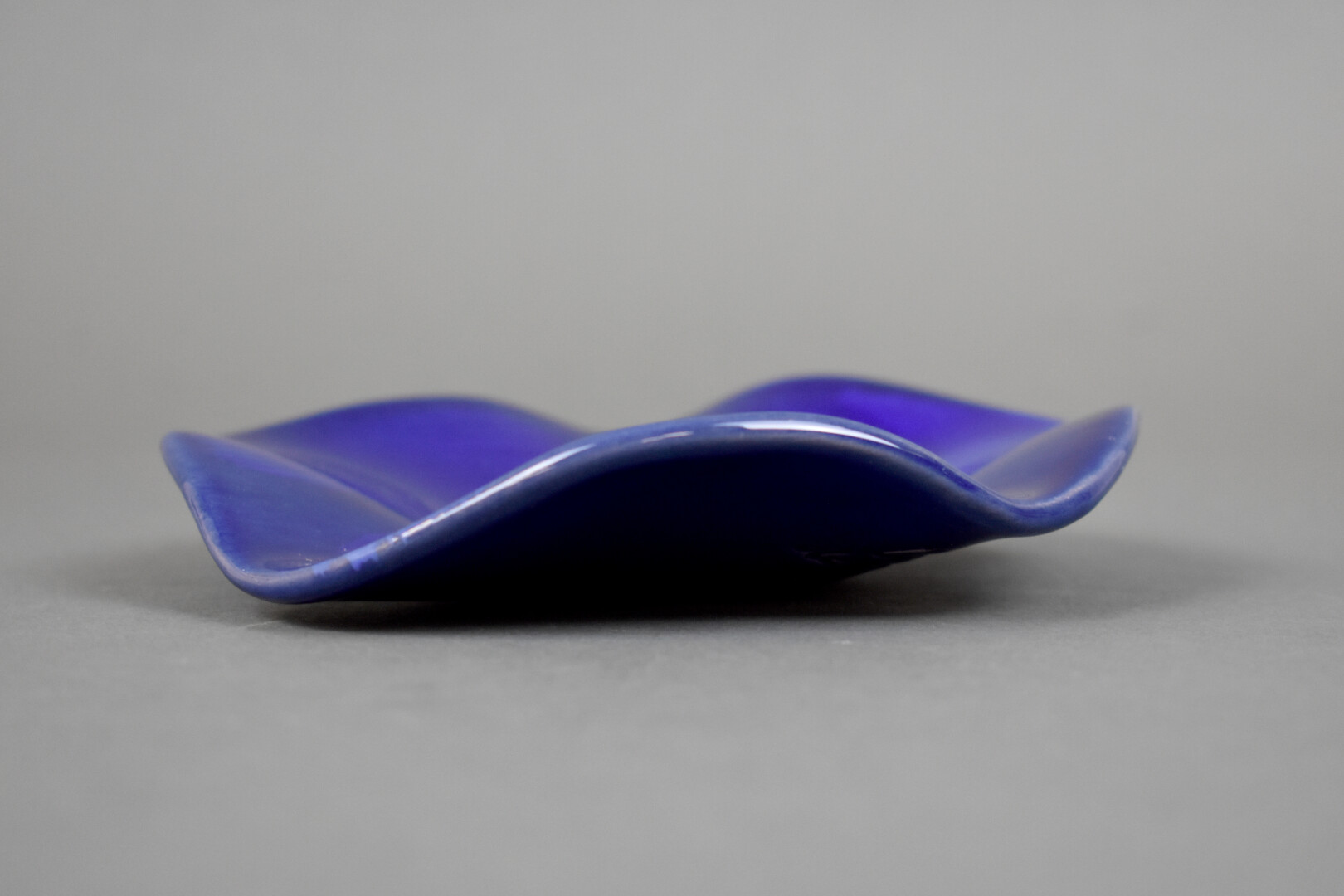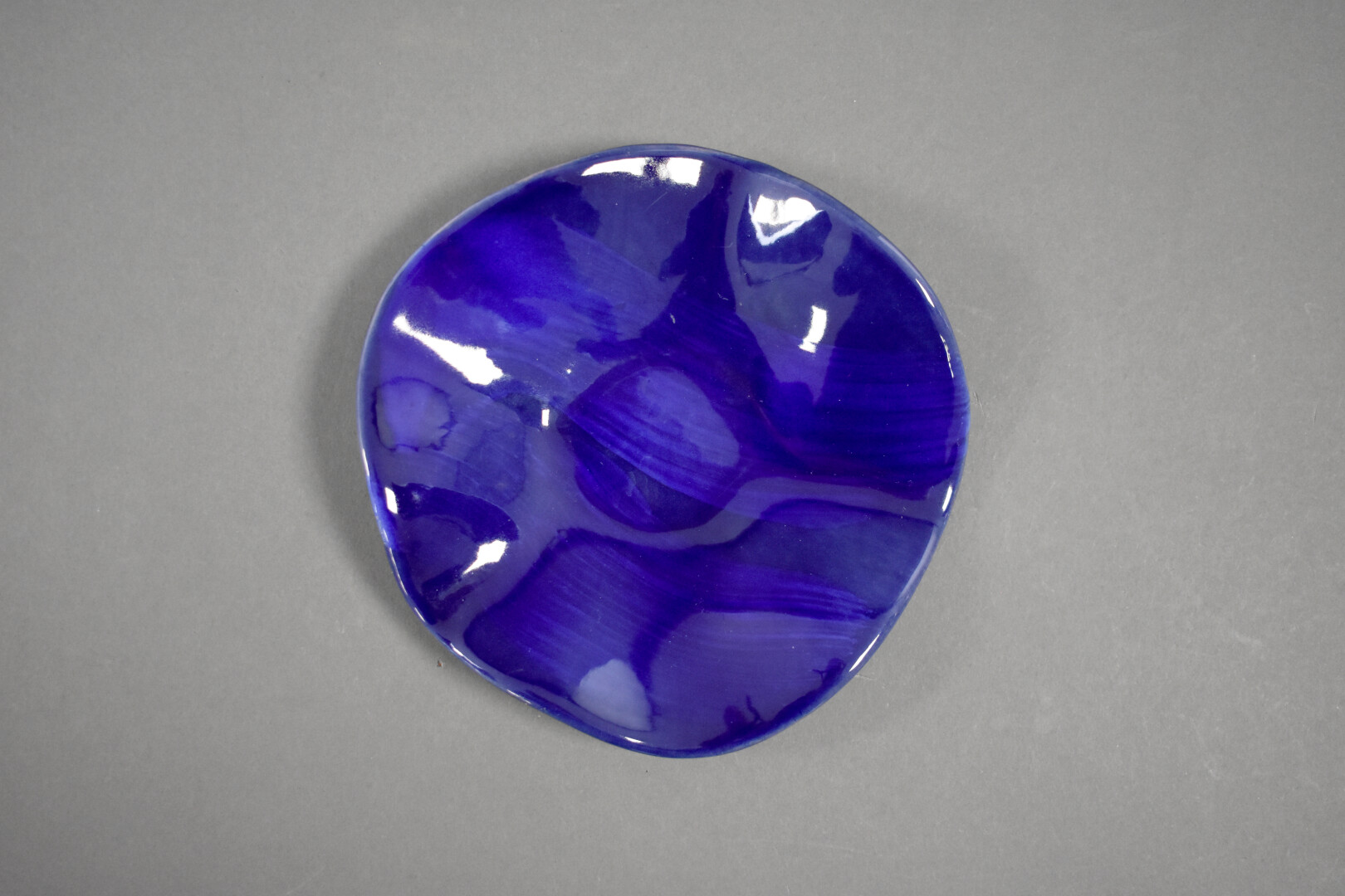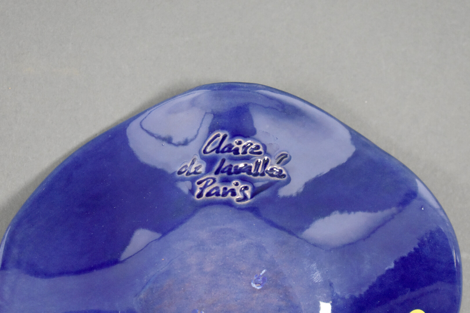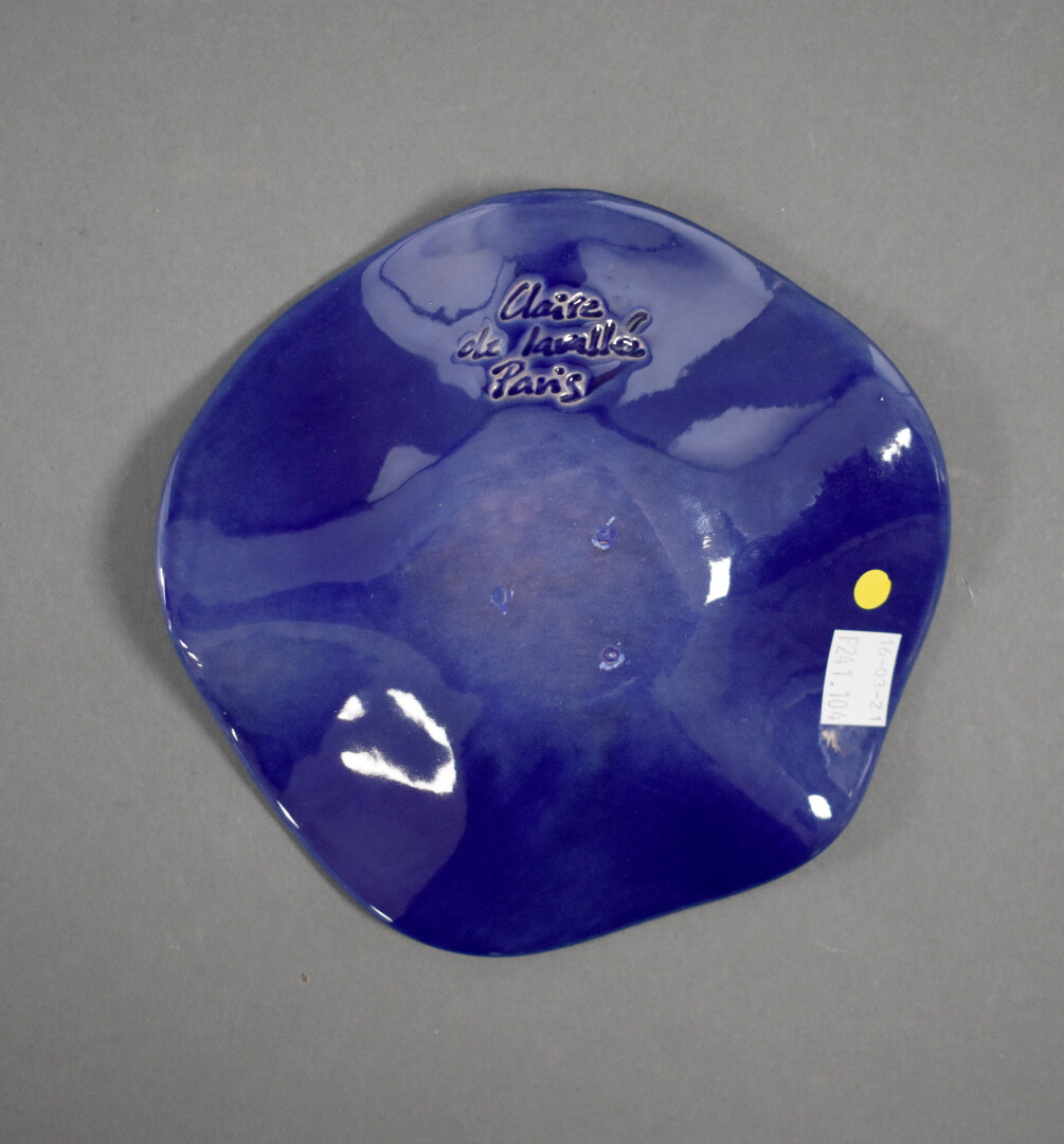 Claire DE LAVALLEE (Née en 1963). Coupe polylobée en céramique émaillée bleu. Signée à la pointe. Diam. : 16,5 cm.
