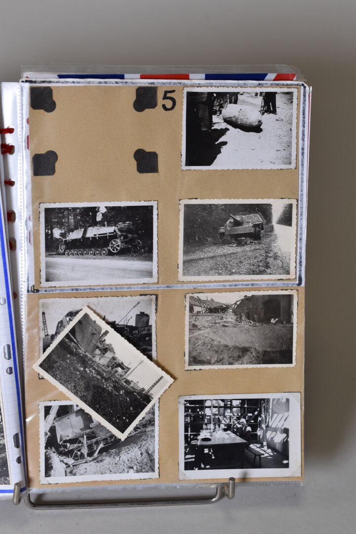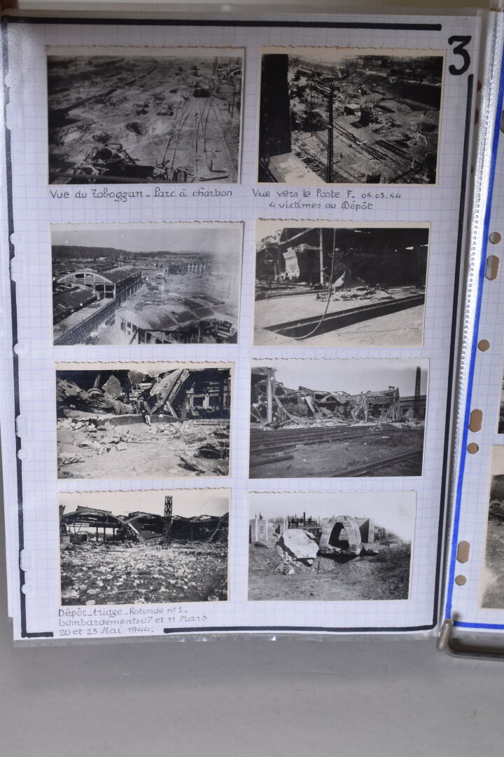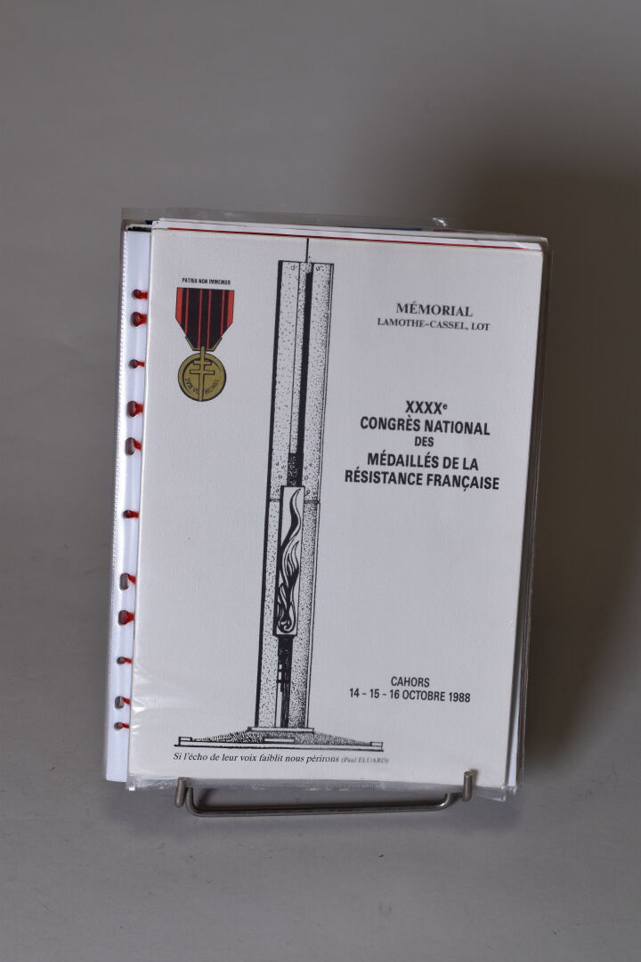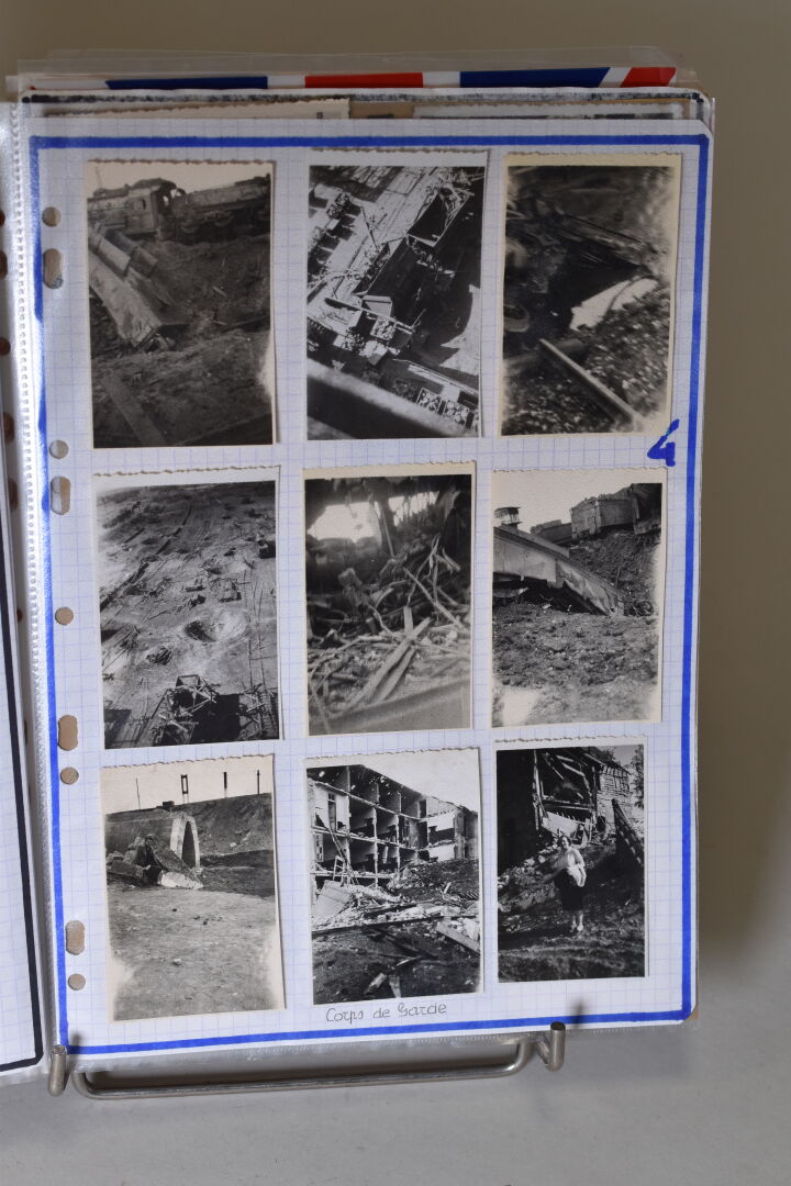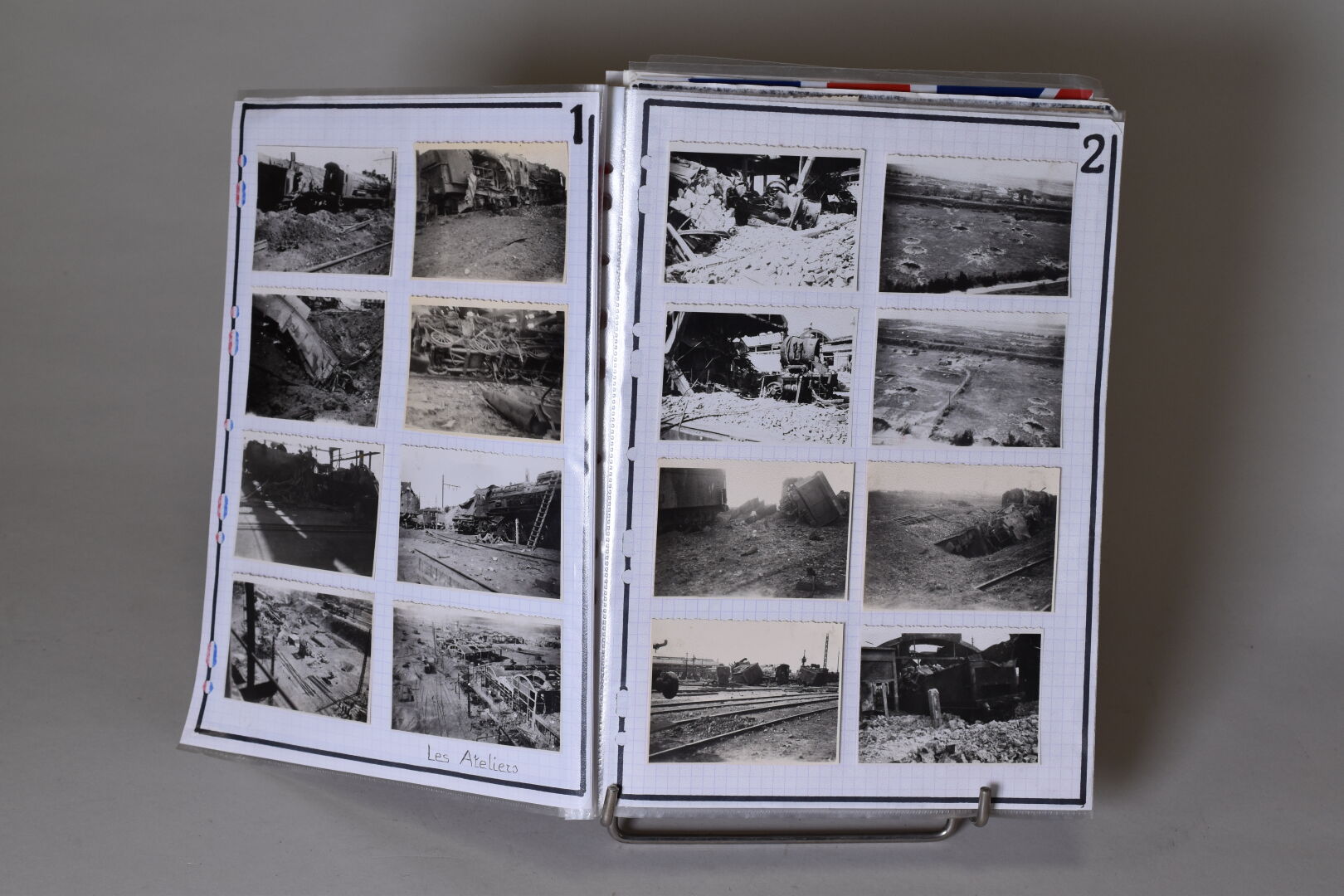 Classeur contenant de nombreuses photographies d’époque, décrivant la libération du Mans et le bombardement du dépôt SNCF de mars 1944. Quelques documents d’époque illustrent aussi ce document (cartes de l’Amical Sarthoise de la Résistance et divers). On y joint un brassard tricolore d’un membre du Conseil national de la Résistance (CNR).