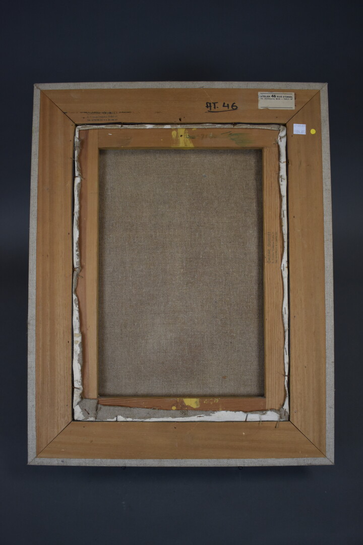 Huile sur toile signée en bas à droite. Au dos tampon « Gallerie GUILLET 8 Avenue Trudain – Paris » et étiquette » Atelier rue d’Orsel – Paris 18e ».
