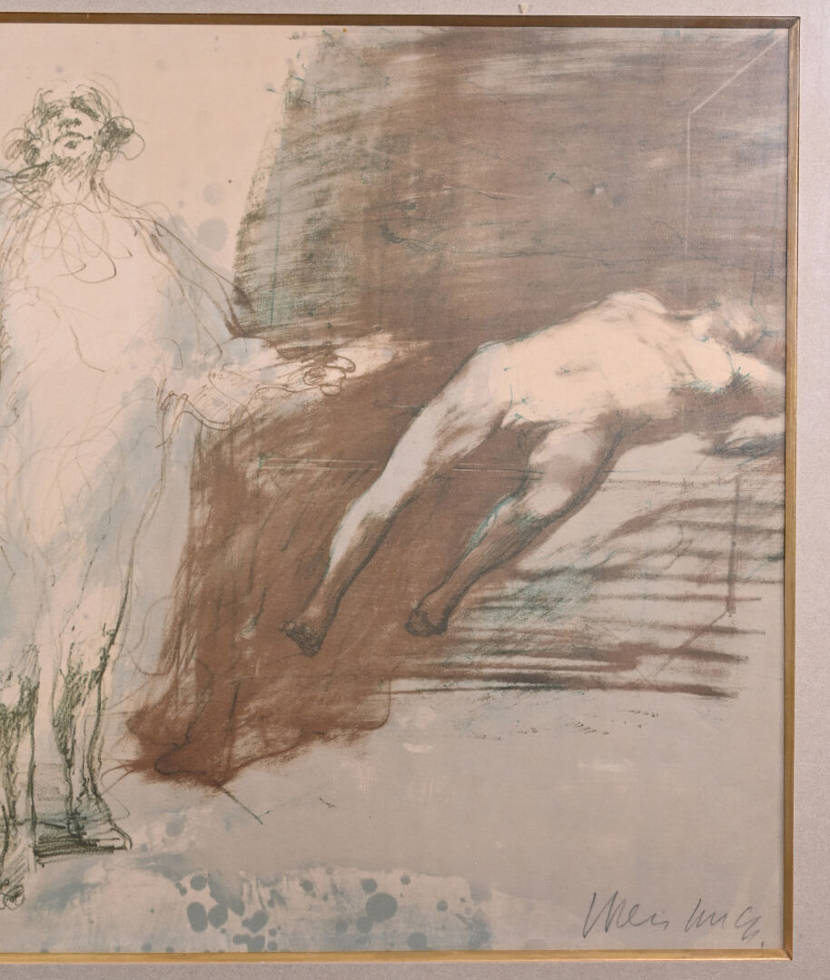 Claude WEISBUCH (1927-2014). Le peintre et son modèle. Lithographie signée au crayon en bas à droite et annotée EA en bas à gauche. 35,5 x 53 cm.