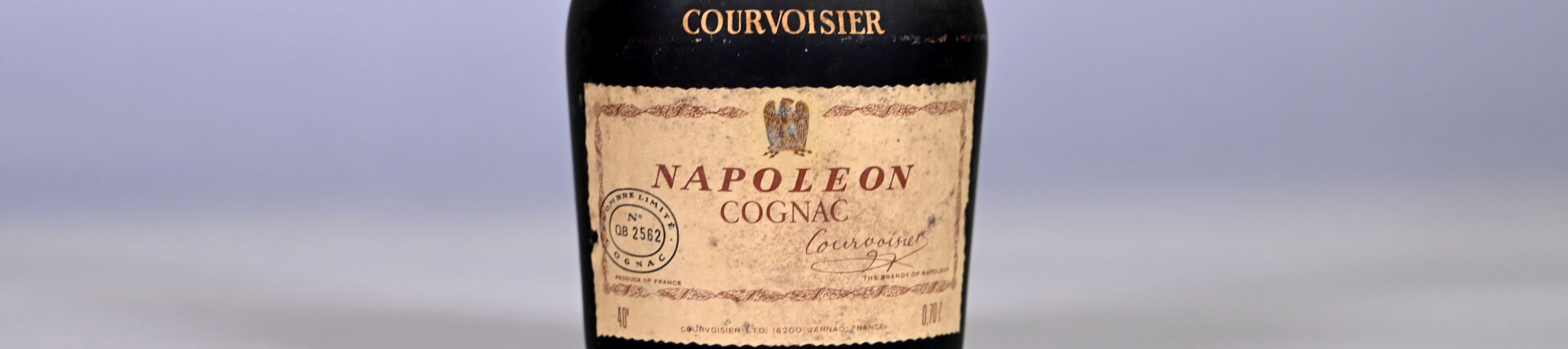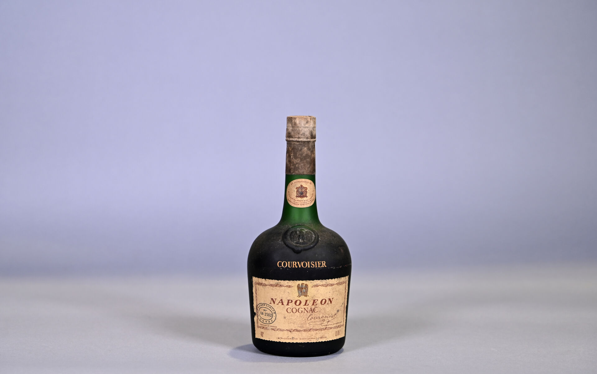 1 bouteille, Cognac, Courvoisier, Napoléon. Niveau légèrement bas. Capsule très sale. Etiquette sale et légèrement abimée.