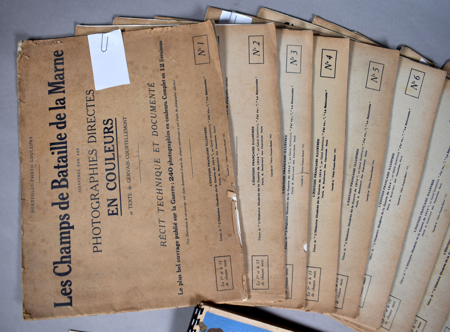 Collection en 12 fascicules de photographies couleur sur la bataille de la marne. Ensemble complet richement illustrés et documentés. On y joint un mémorial de la guerre, 1940. Etat 1
