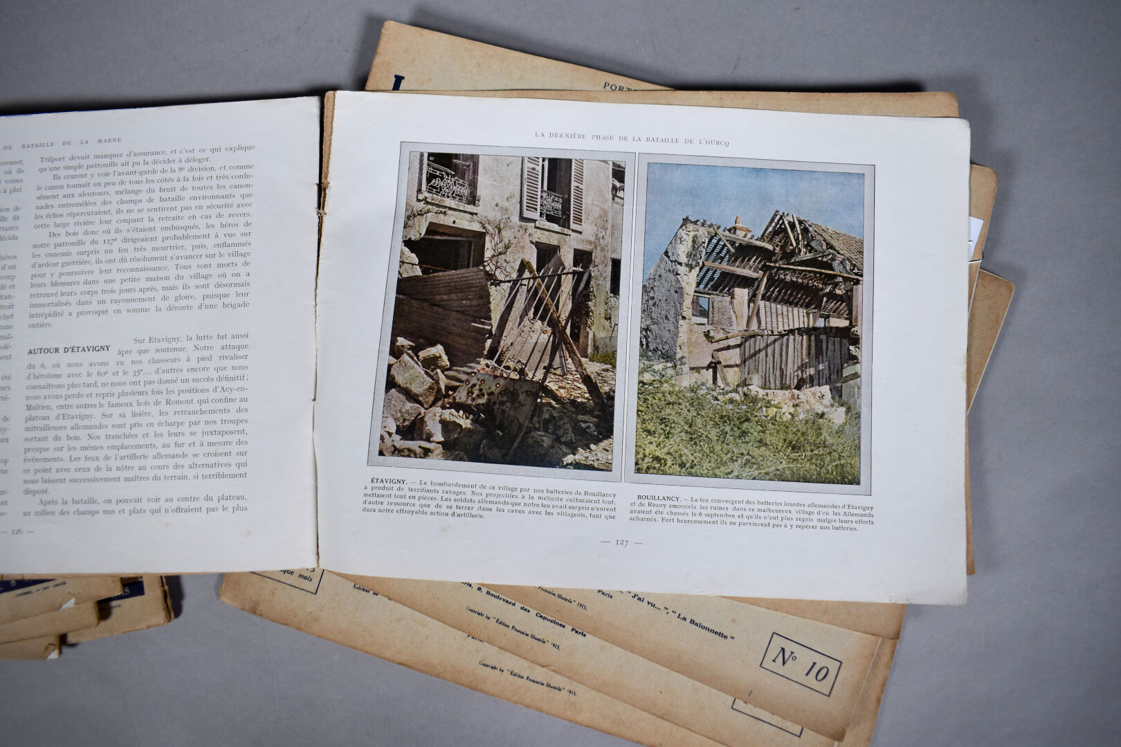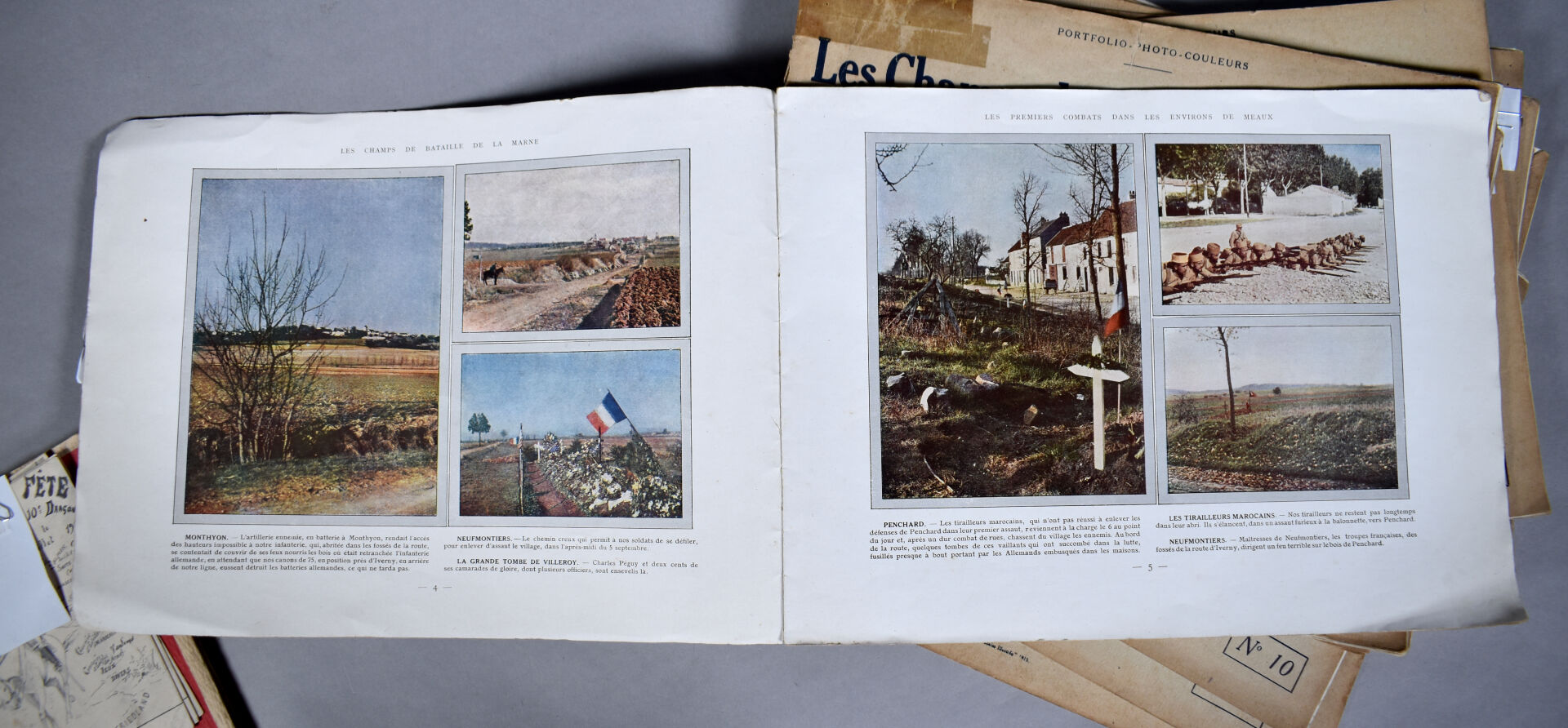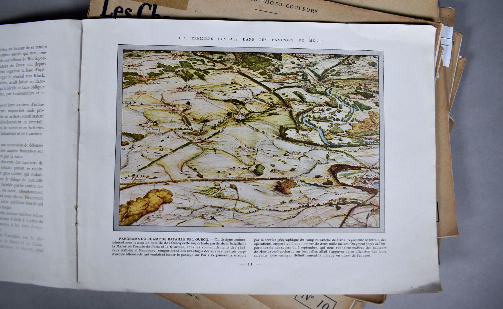 Collection en 12 fascicules de photographies couleur sur la bataille de la marne. Ensemble complet richement illustrés et documentés. On y joint un mémorial de la guerre, 1940.