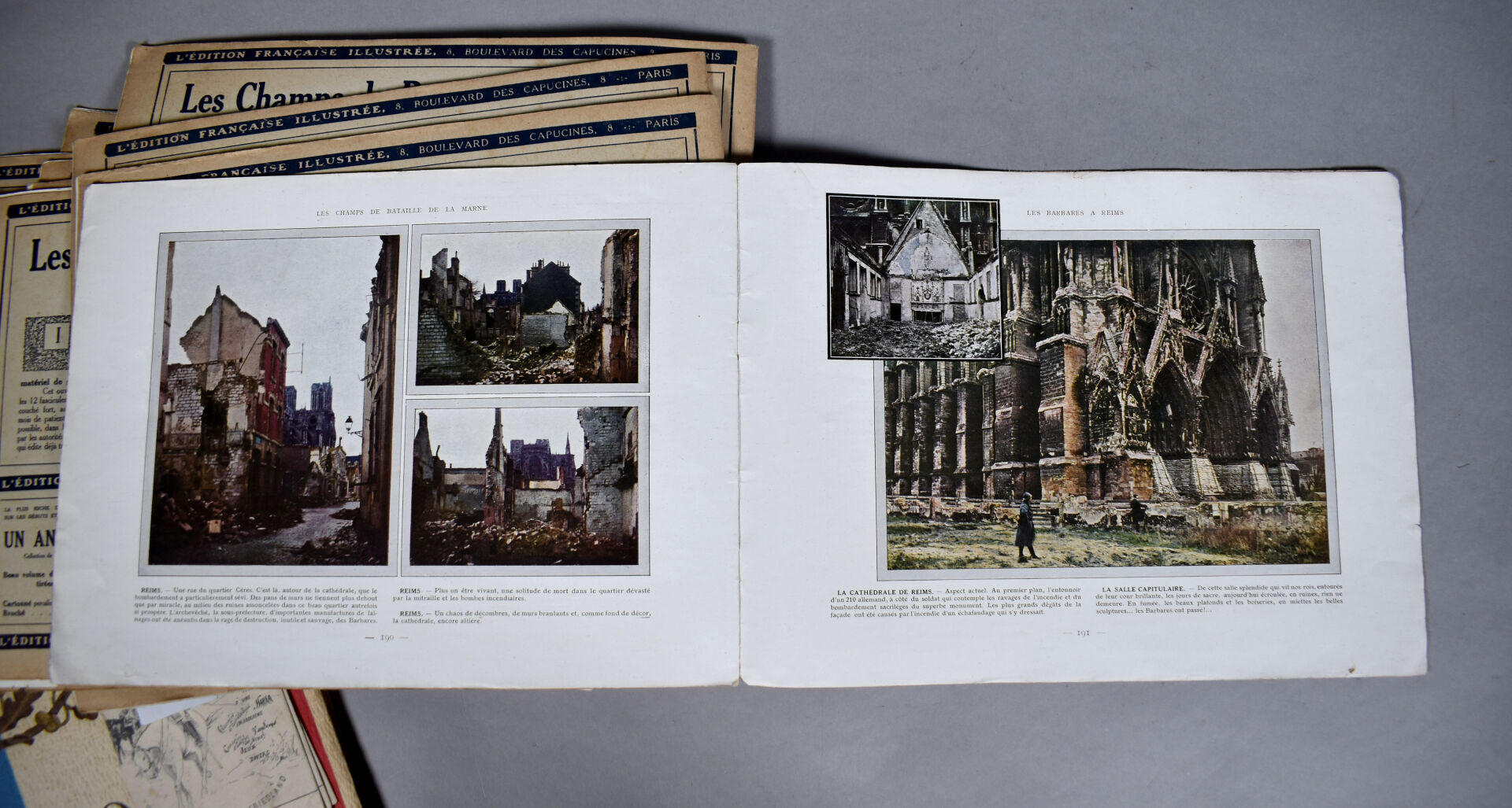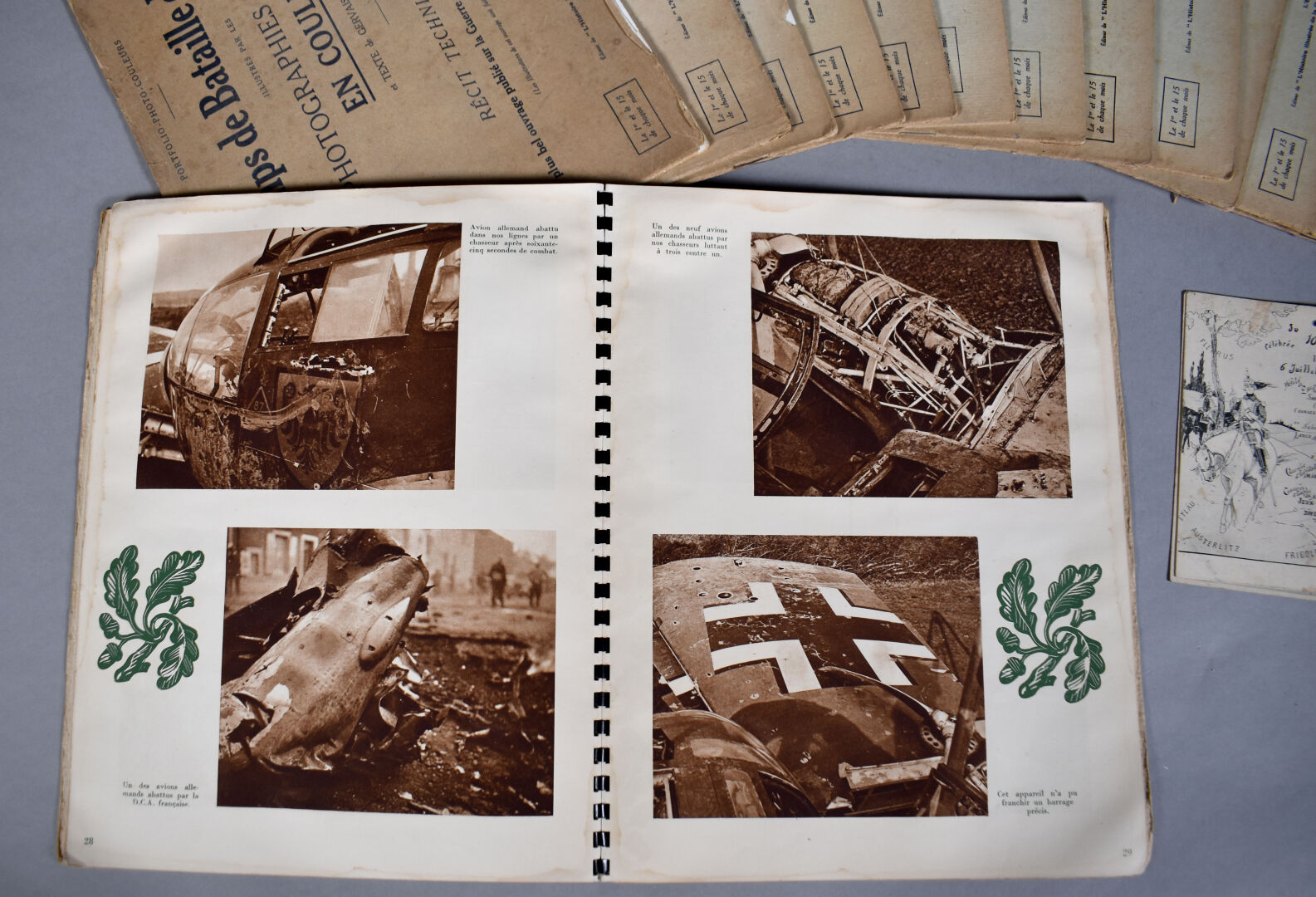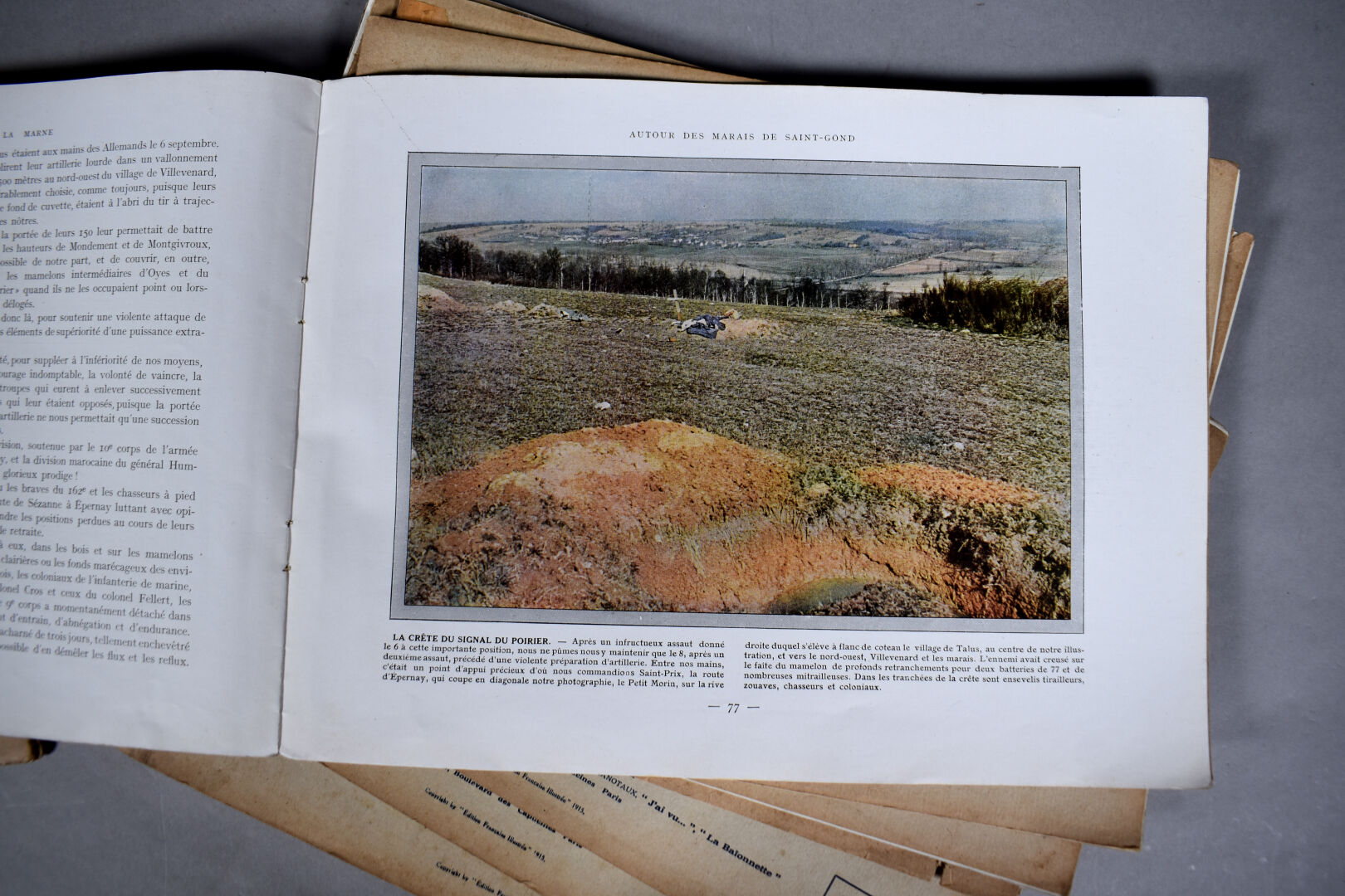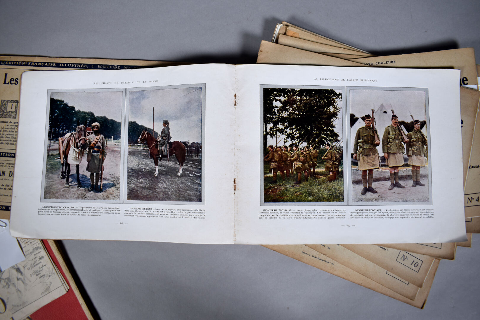 Collection en 12 fascicules de photographies couleur sur la bataille de la marne. Ensemble complet richement illustrés et documentés. On y joint un mémorial de la guerre, 1940.