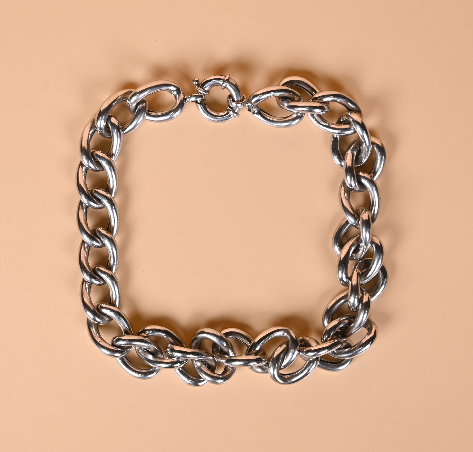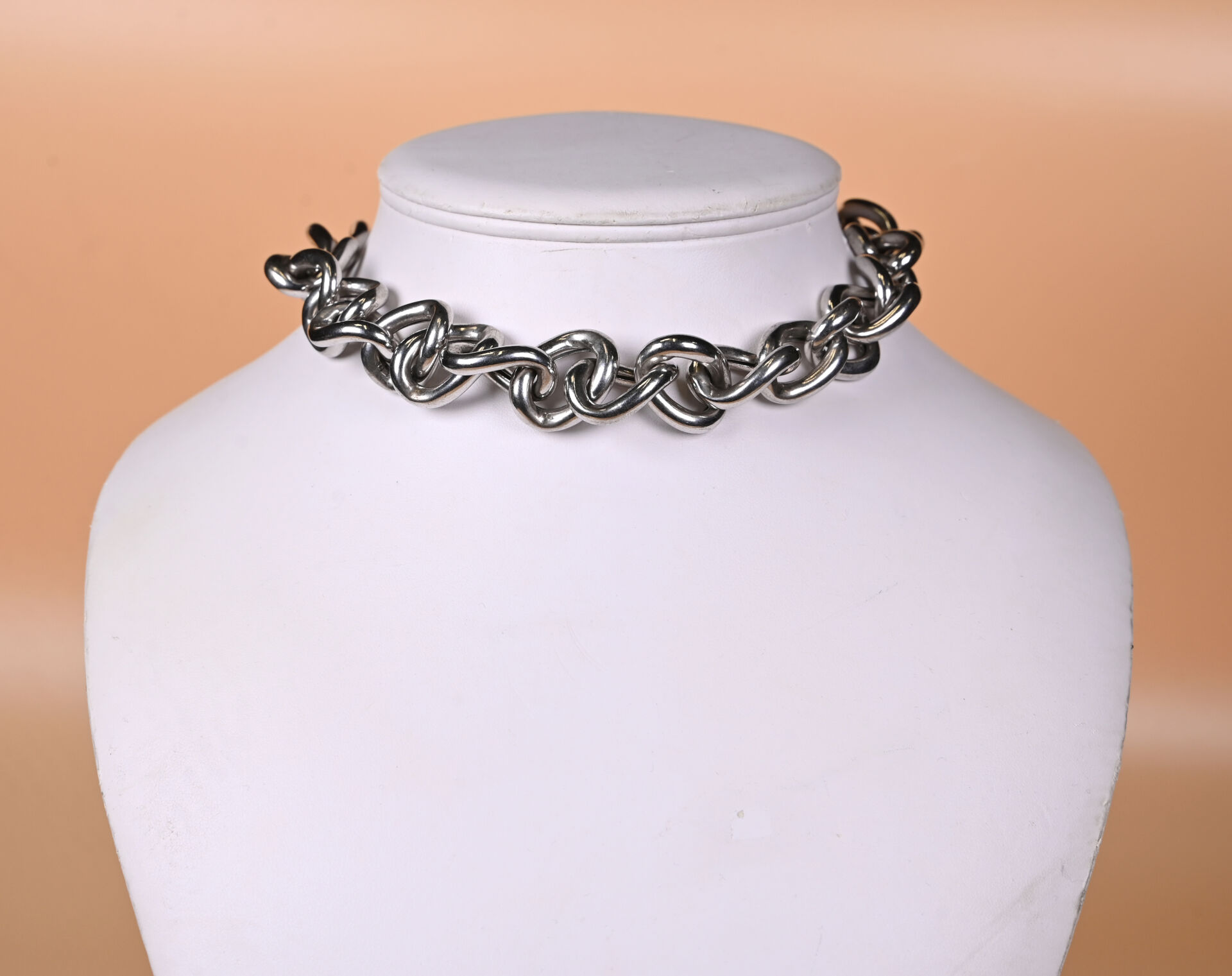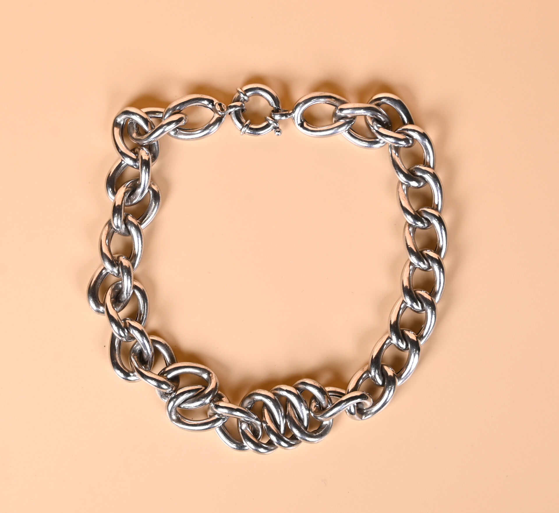 Collier à maille anglaise creuse en argent 925/1000e. Long. : 44 cm. Poids : 93,23 g.