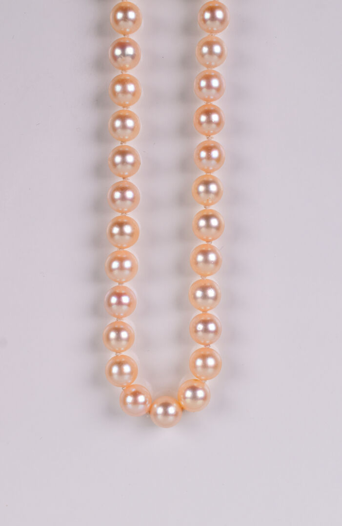 Collier de perles de culture chocker. Fermoir en or jaune 18K 750/1000e Long. : 47 cm. Poids brut. : 32,66 g.