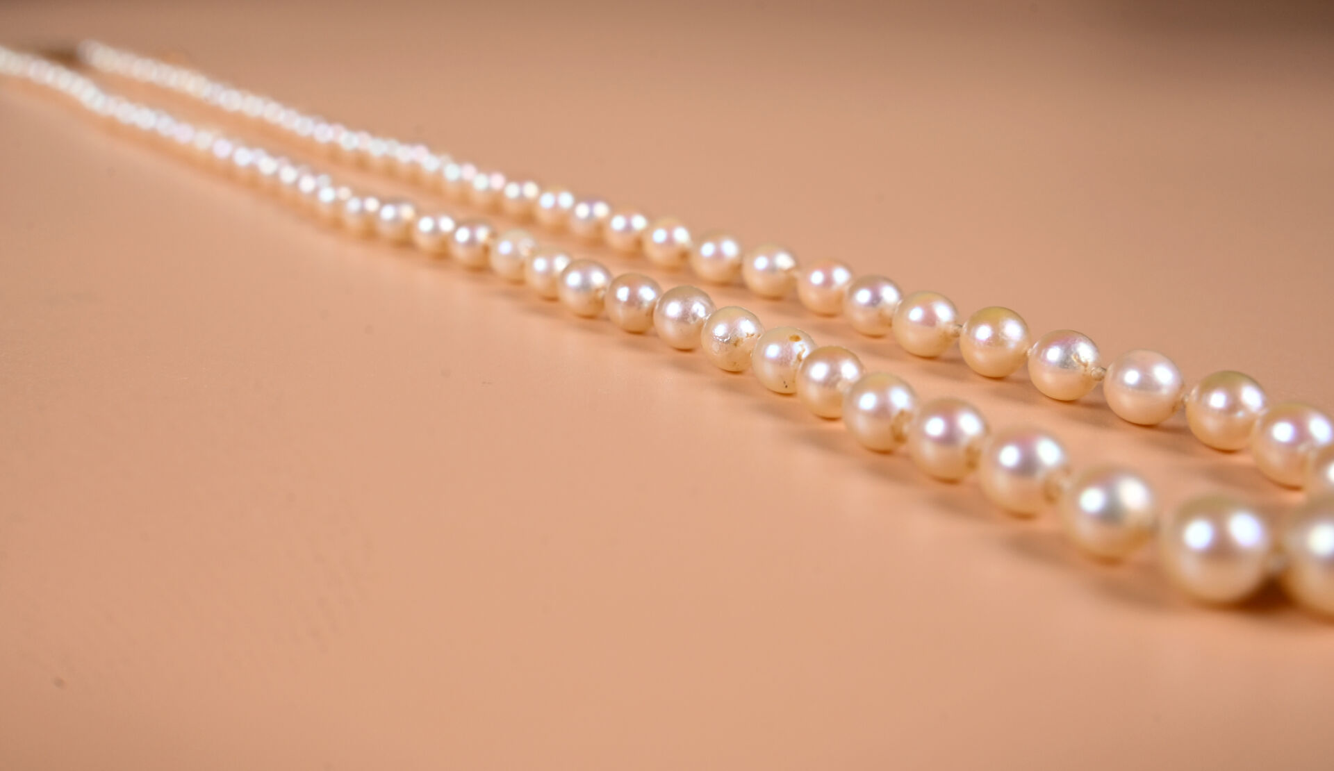 Collier de perles de culture en chute à fermoir et chaînette de sécurité en or jaune 18K 750/1000e. Long. : 55 cm. Poids brut. : 21,2 g.