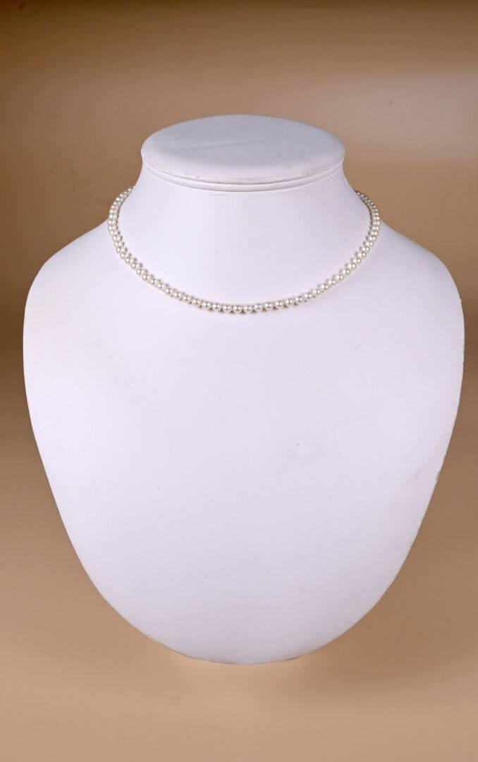 Collier de petites perles de culture choker. Fermoir en or 18k 750 millièmes. 42 cm. Avec écrin.