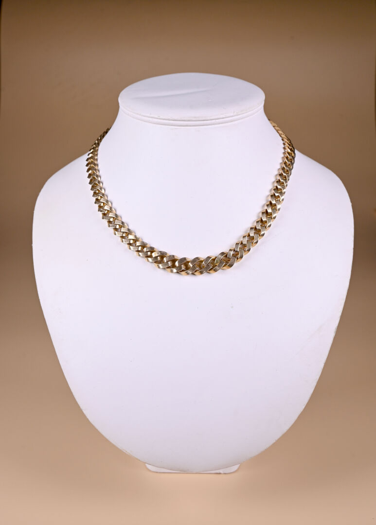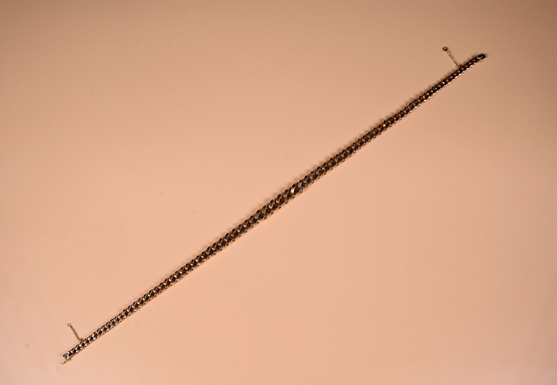 Collier en or 18K 750/1000e à maille gourmette creuse en chute (petits chocs). Long. : 47,5 cm Poids. : 25,5 g.