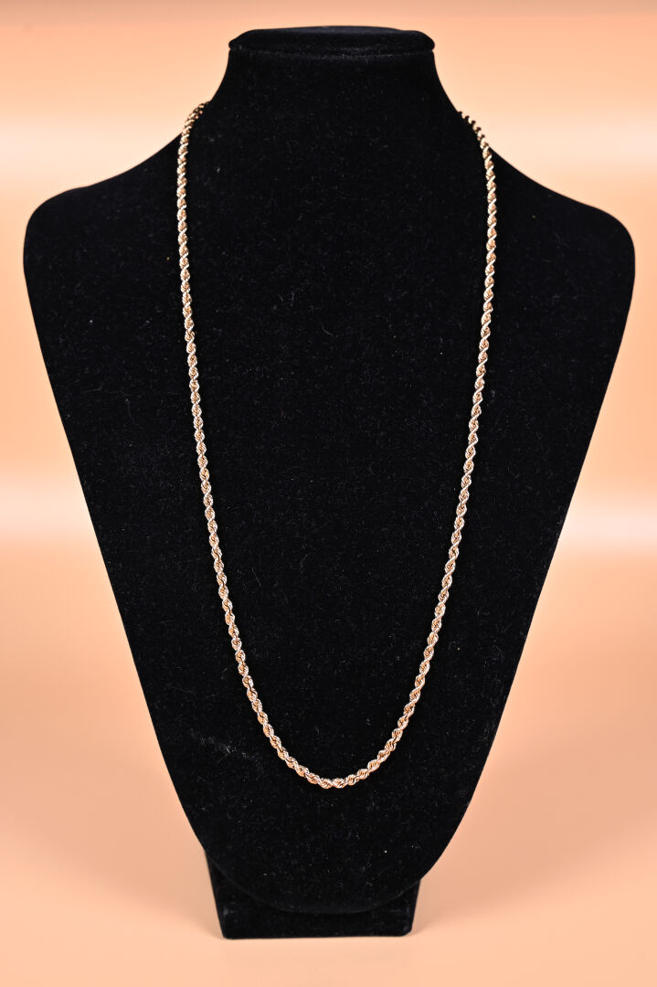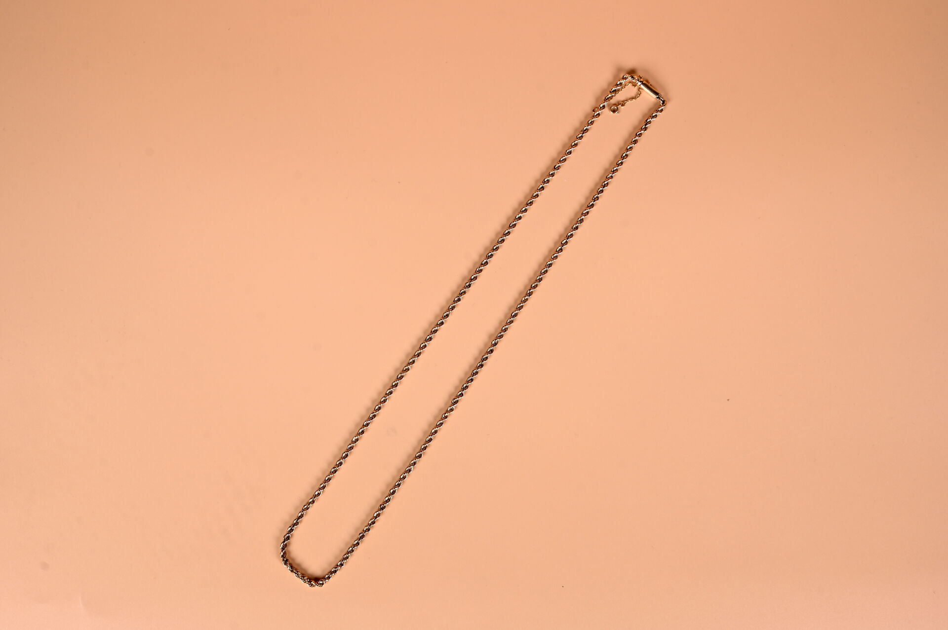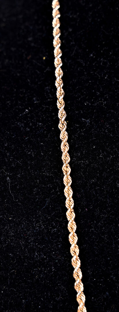 Collier en or jaune 18K 750/1000e à maille corde. Avec chaînette de sécurité. Long. : 64,5 cm. Poids. : 31,32 g.