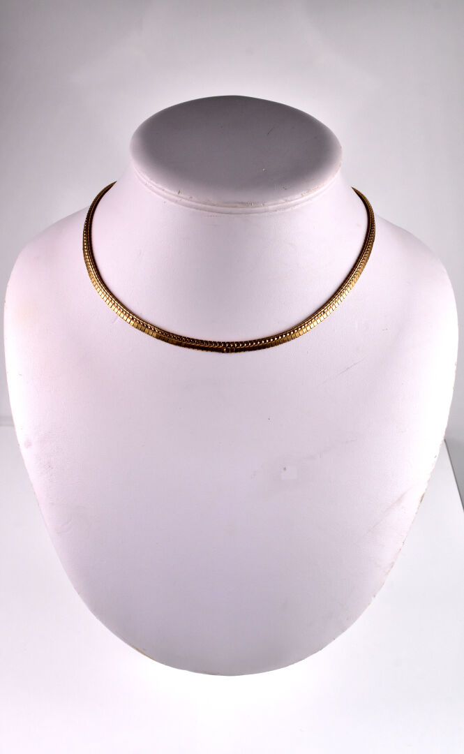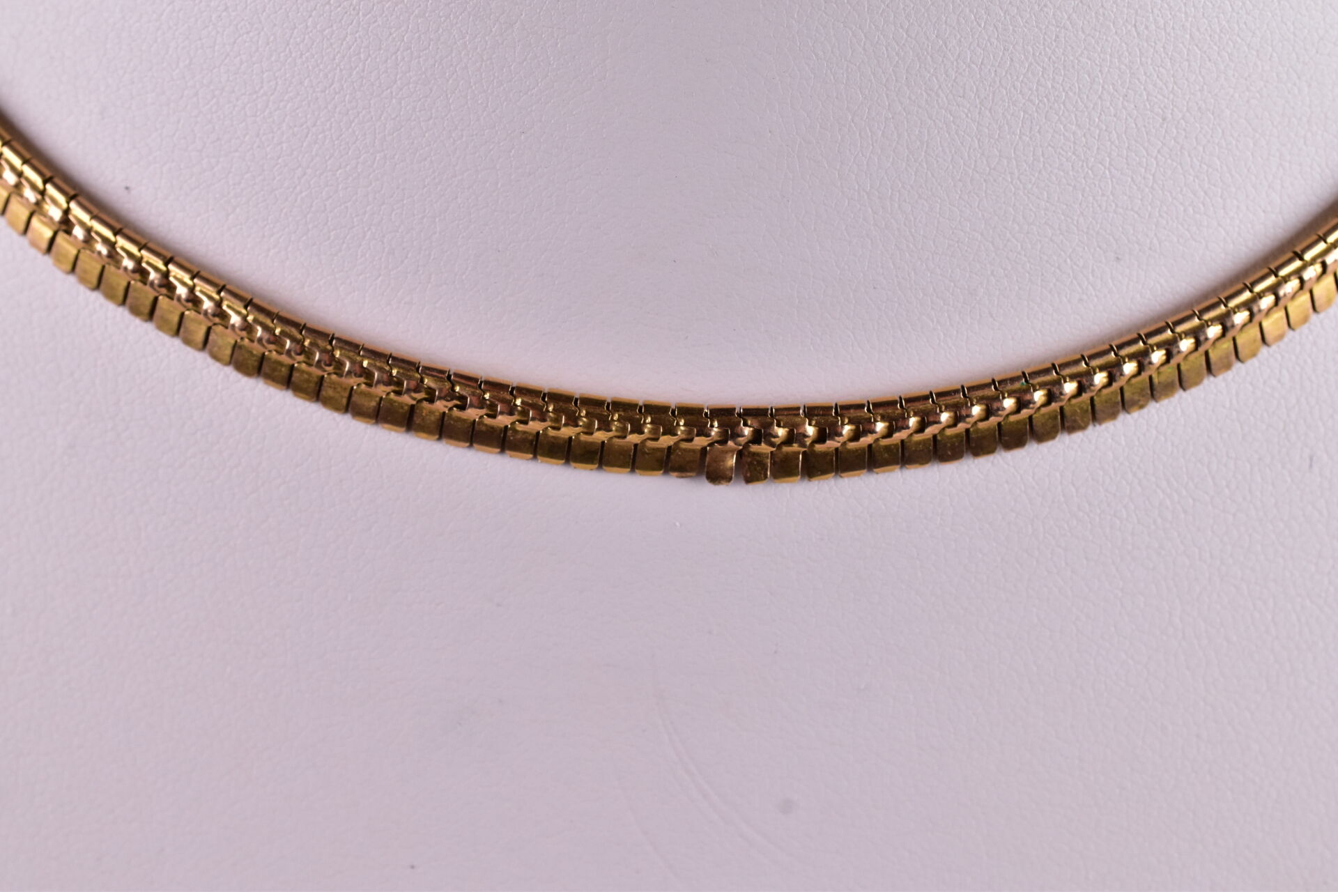 Collier en or jaune 18K 750/1000e à maille rectangle articulée (accidents). Long. : 44 cm. Poids. : 10,9 g.
