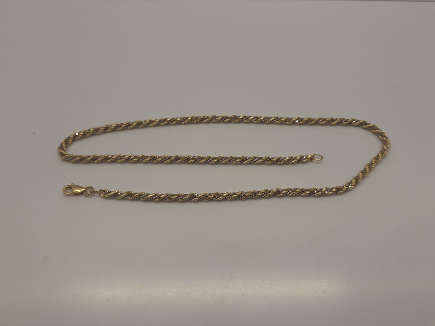 Collier en ors jaune et gris 18k 750/1000e à maille corde long.env. 41cm. Poids = 9,45g.