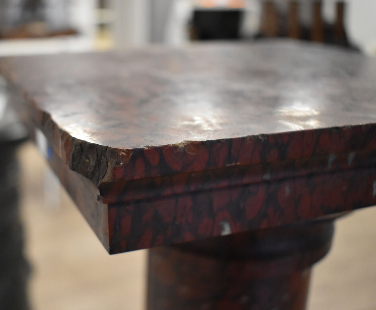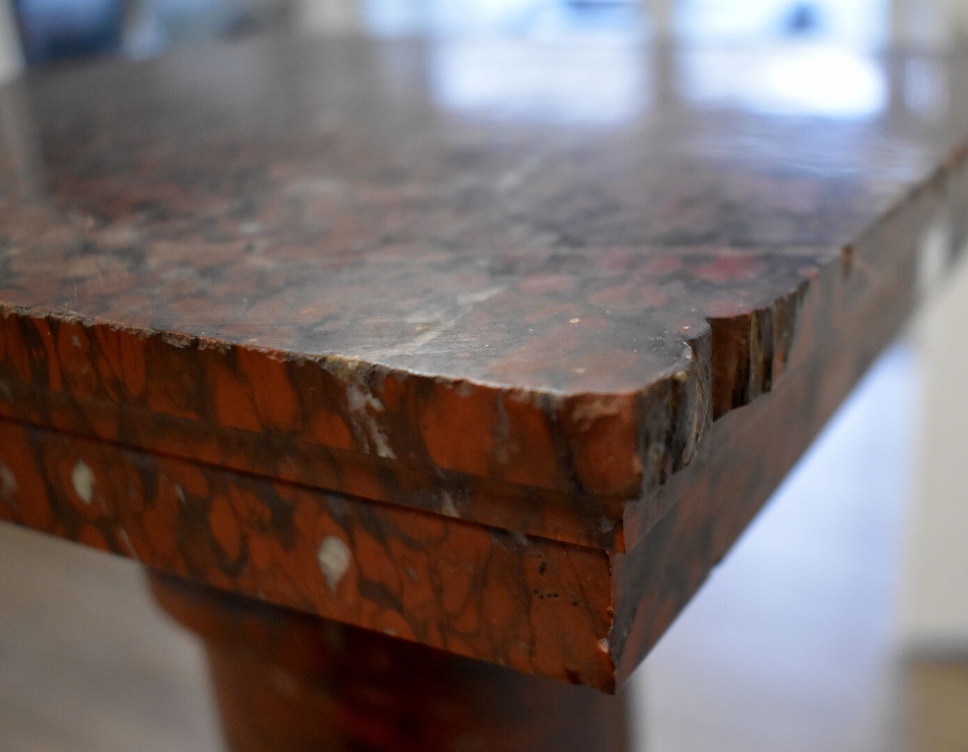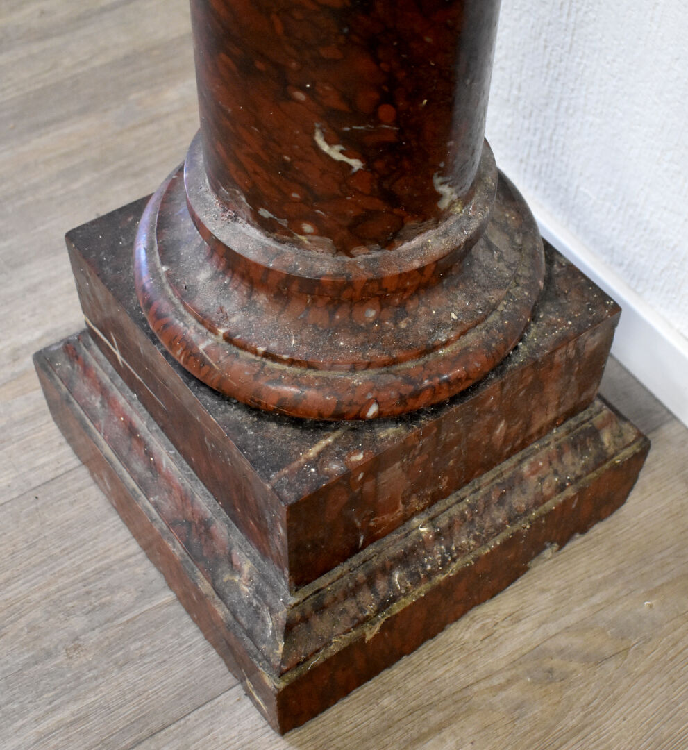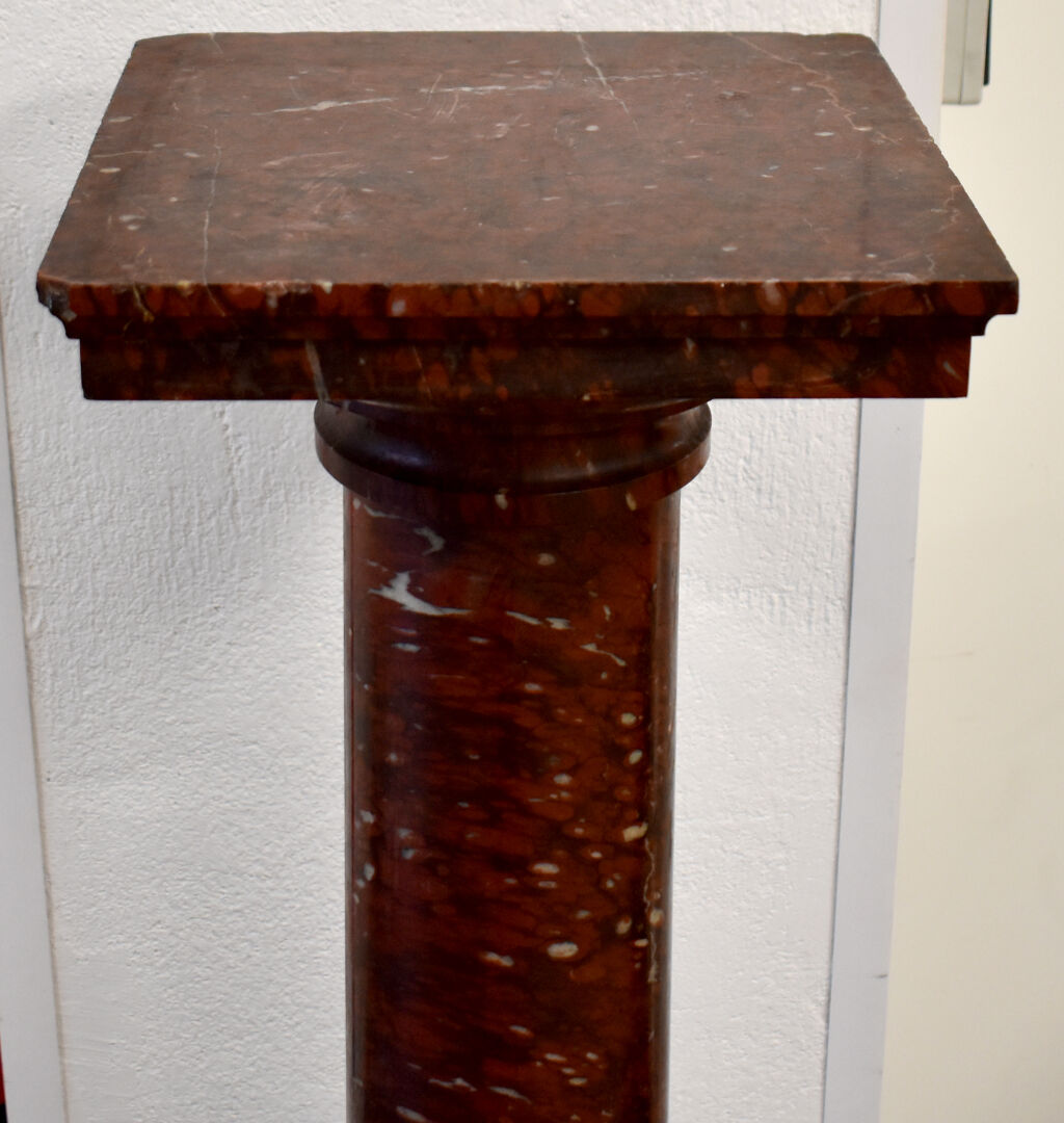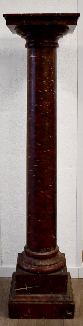 Colonne dorique en marbre rouge griotte (égrenures). Haut. : 129 cm.