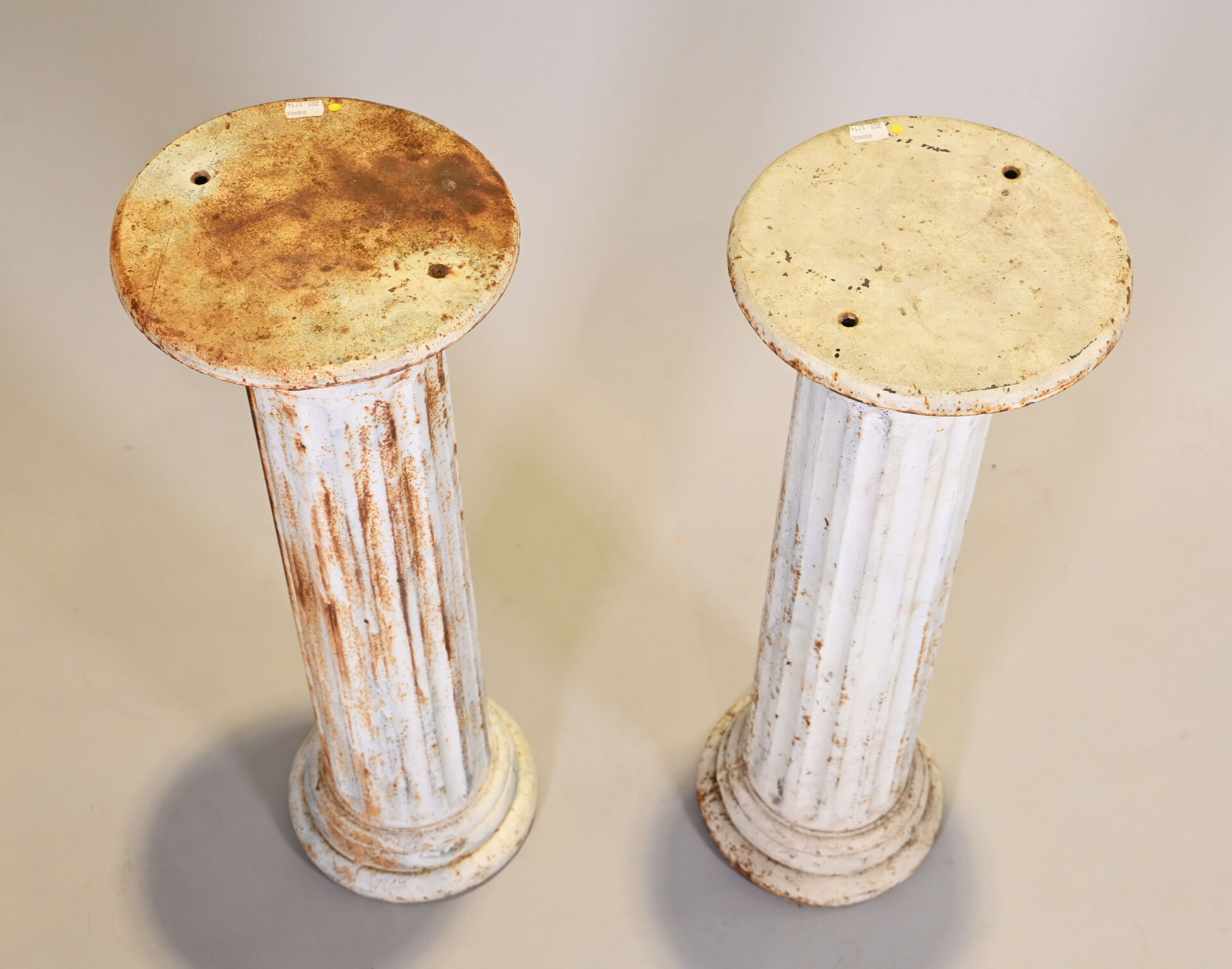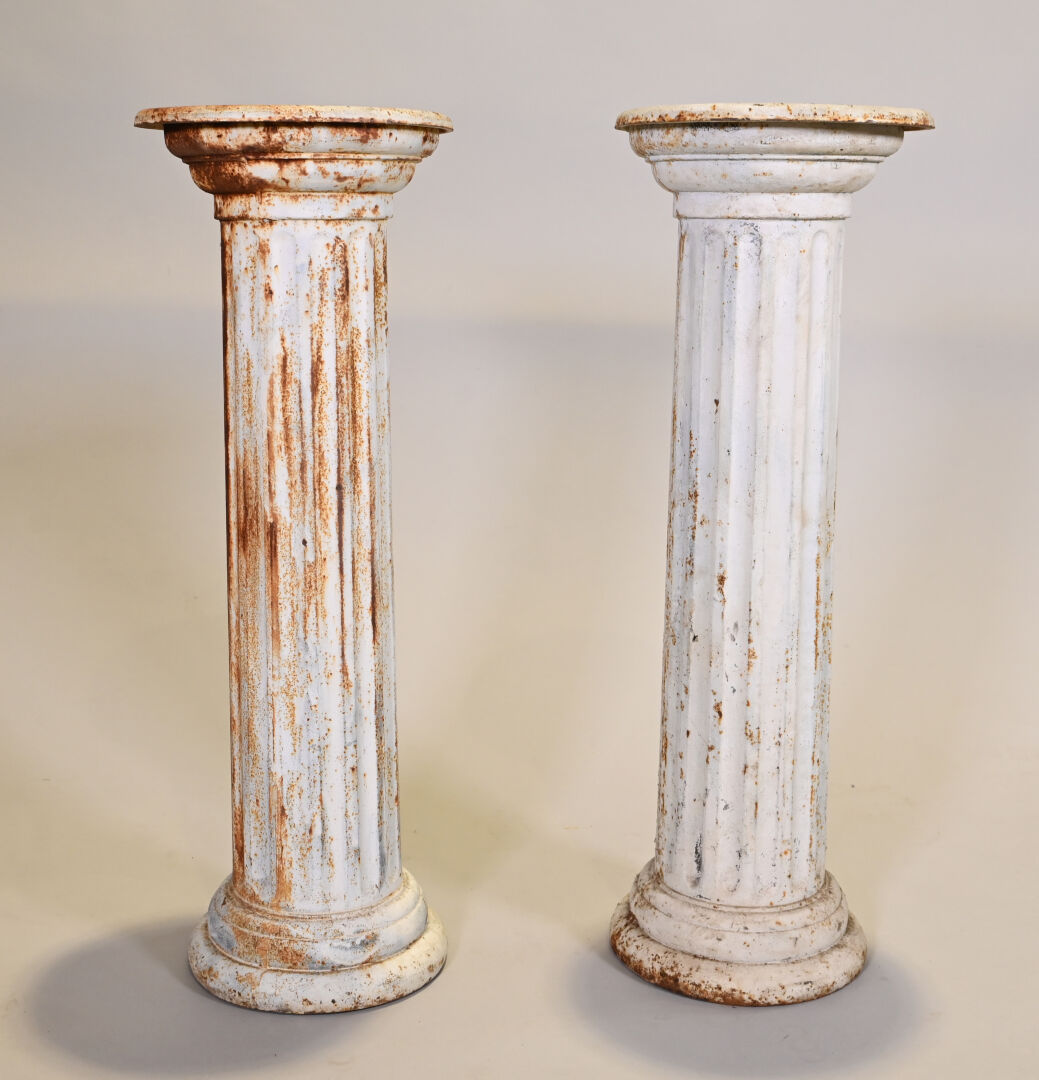 Colonnes cannelées de jardin en fonte laquée crème (rouille). Haut. : 74,5 cm.