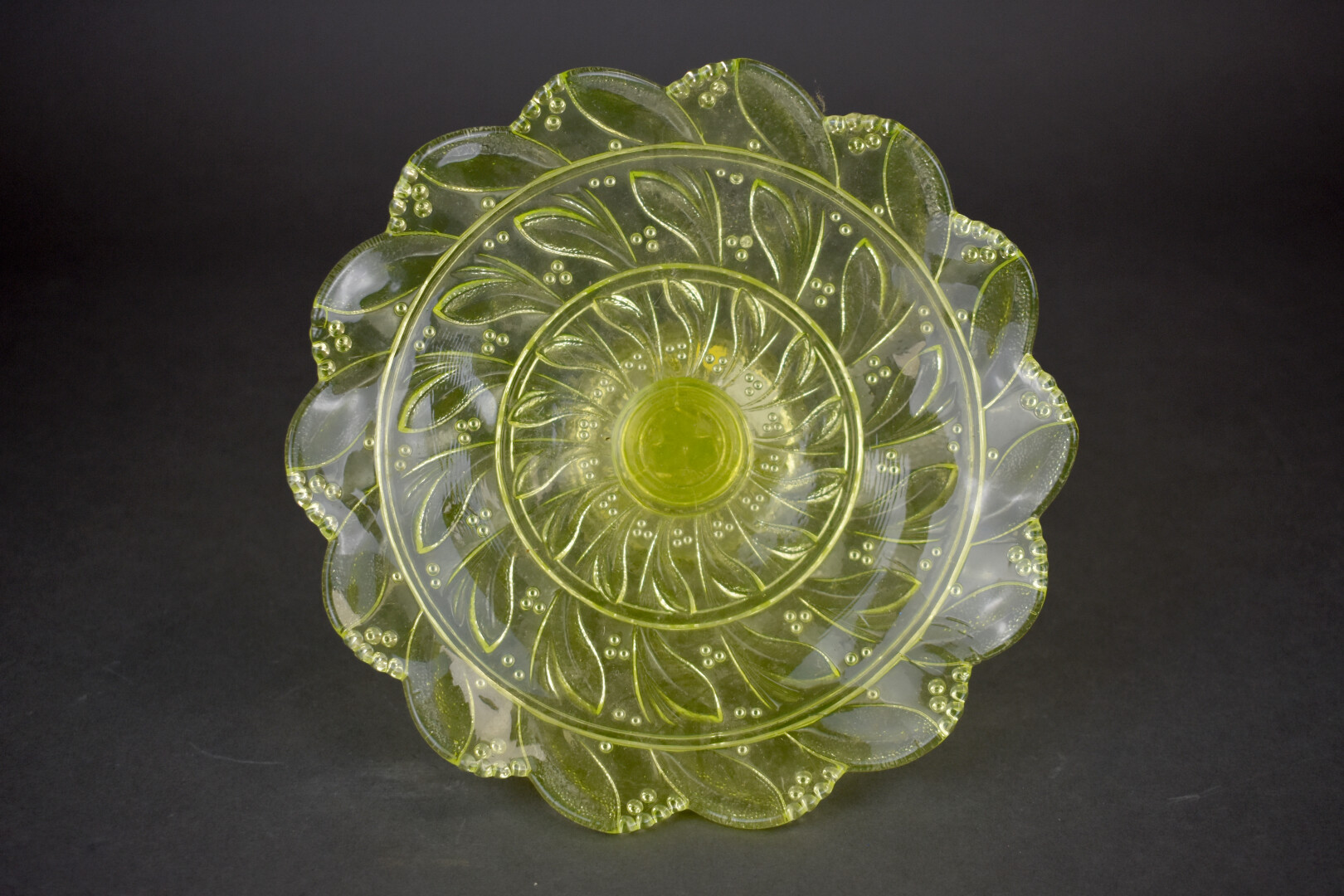 Coupe sur pied en ouraline oulée de motifs végétaux. Haut. : 11,5 cm.