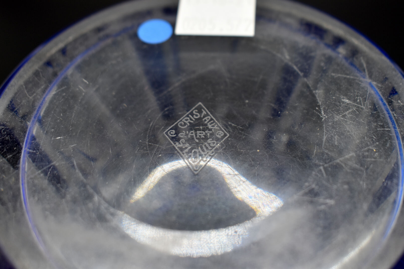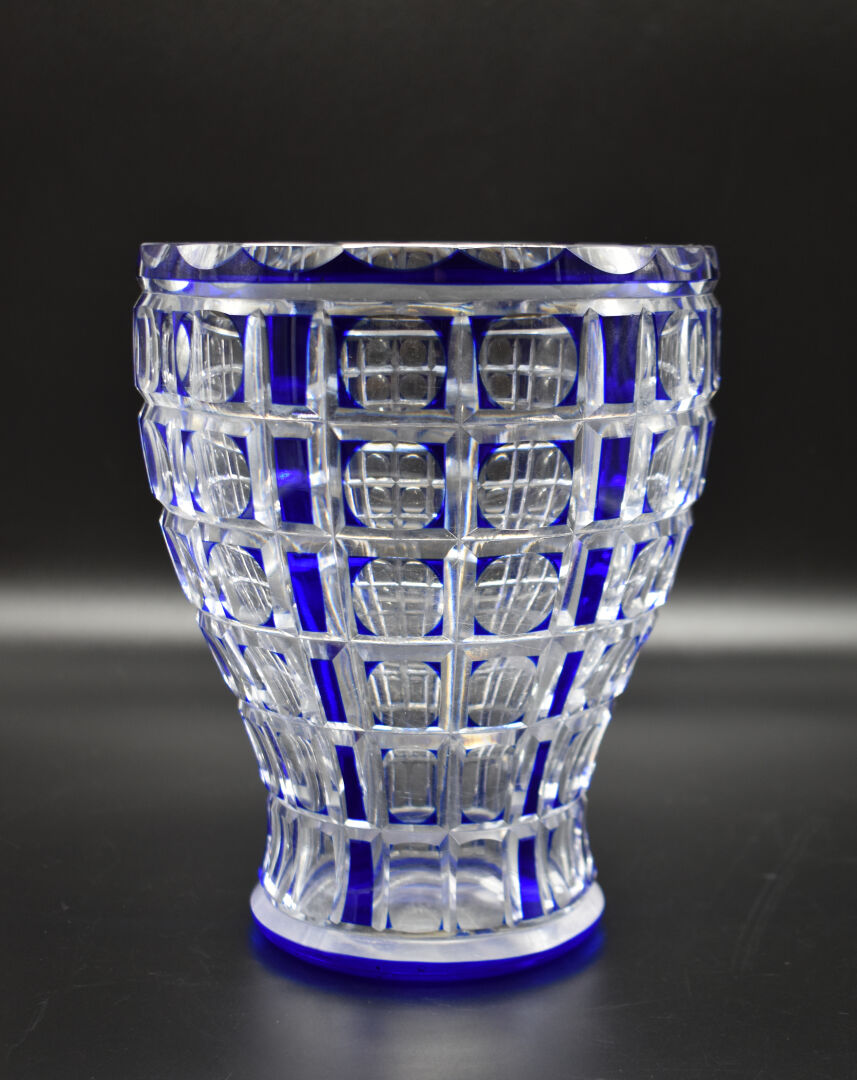 CRISTAUX D’ART SAINT LOUIS. Vase balustre en cristal taillé à décor en overlay bleu. Marqué sous la base. Haut. : 20,5 cm.