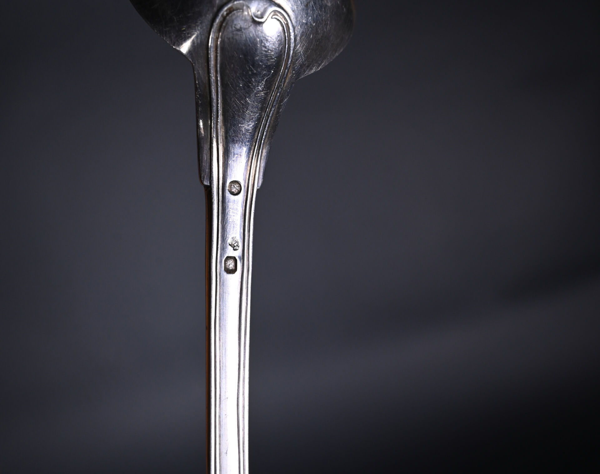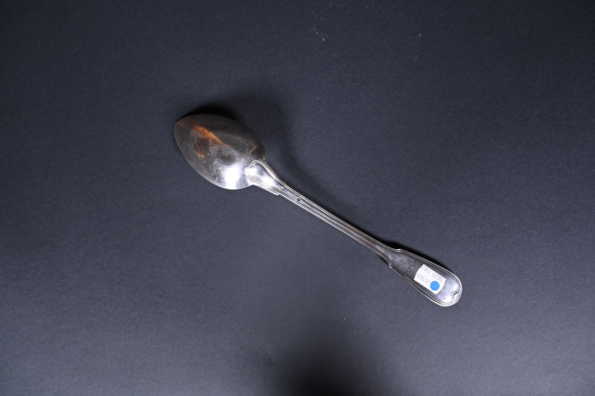 Cuillère en argent 925/1000e en argent, modèle à filet. Poinçon vieillard. Poids. : 152 g.