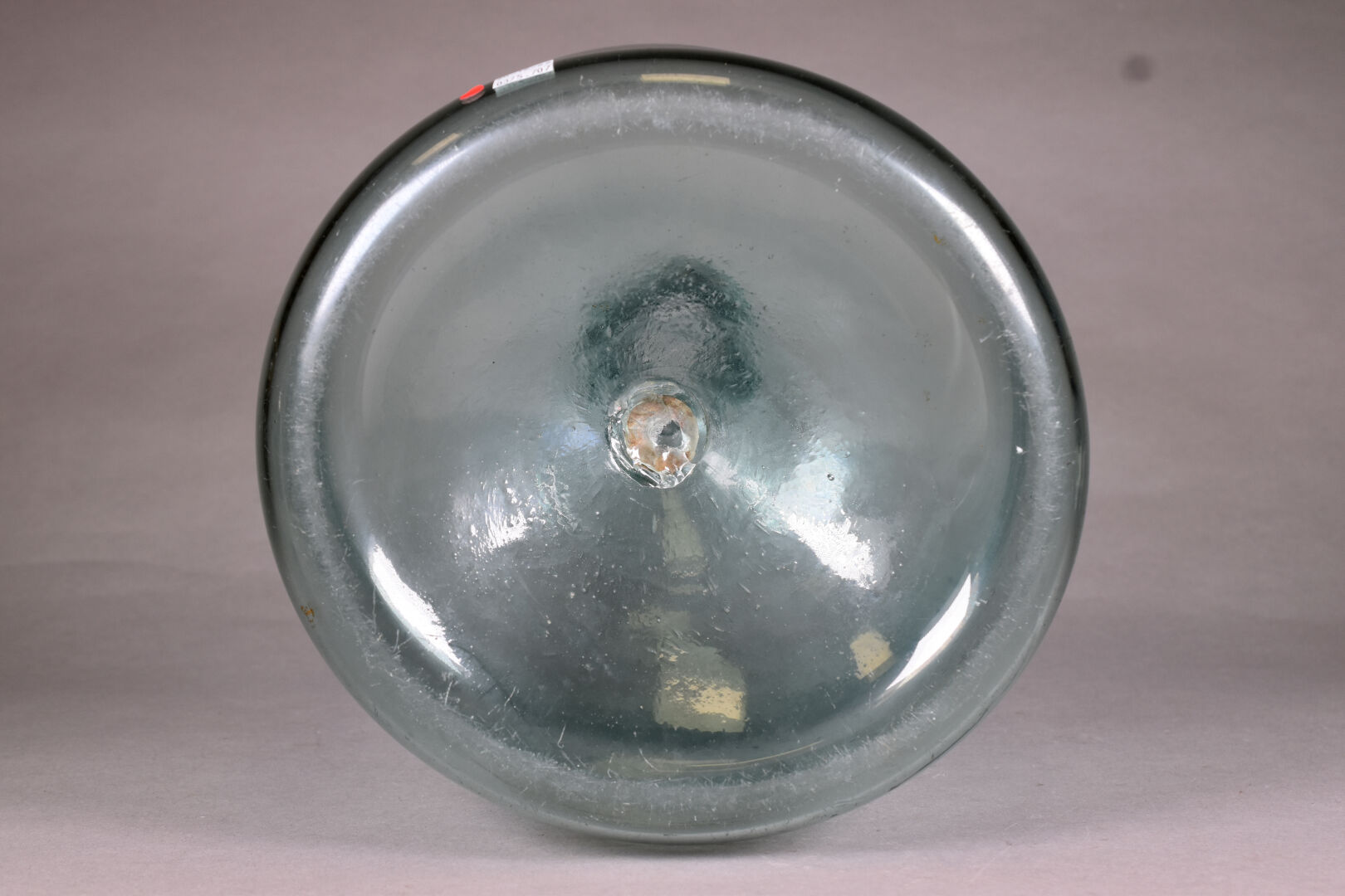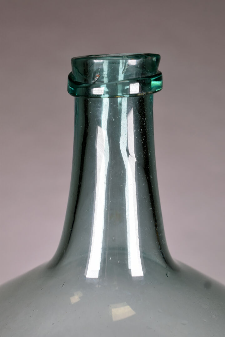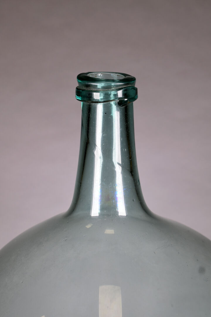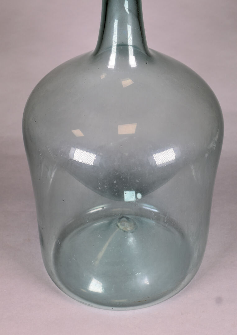 Dame Jeanne en verre légèrement bleuté. Probablement Grésigne . Haut. : 51 cm.