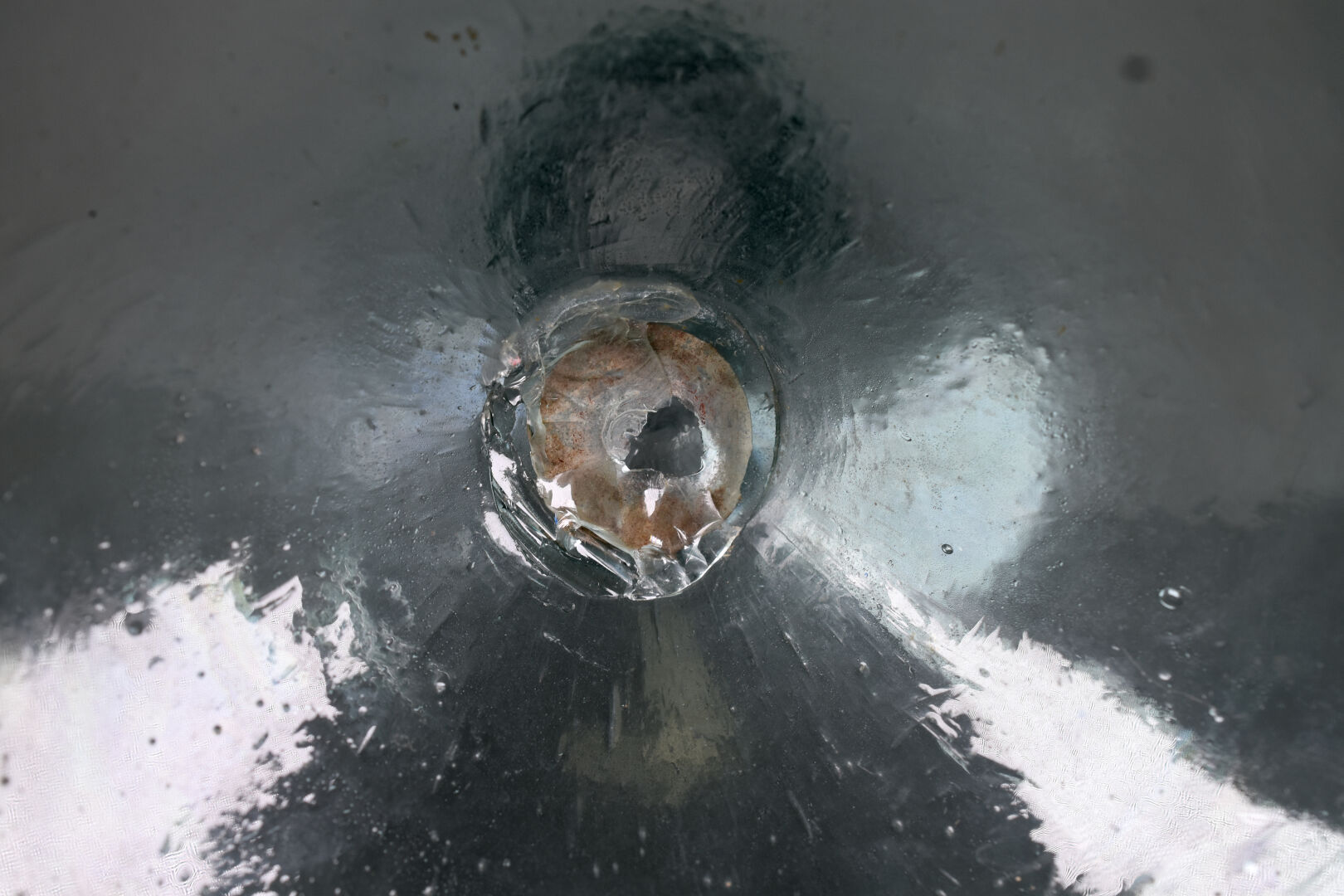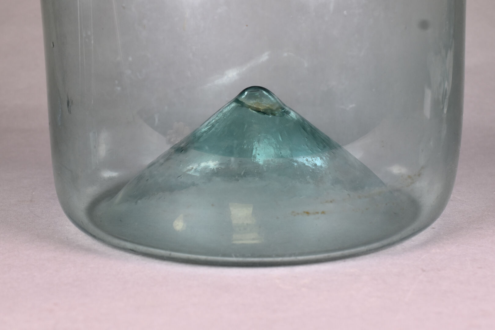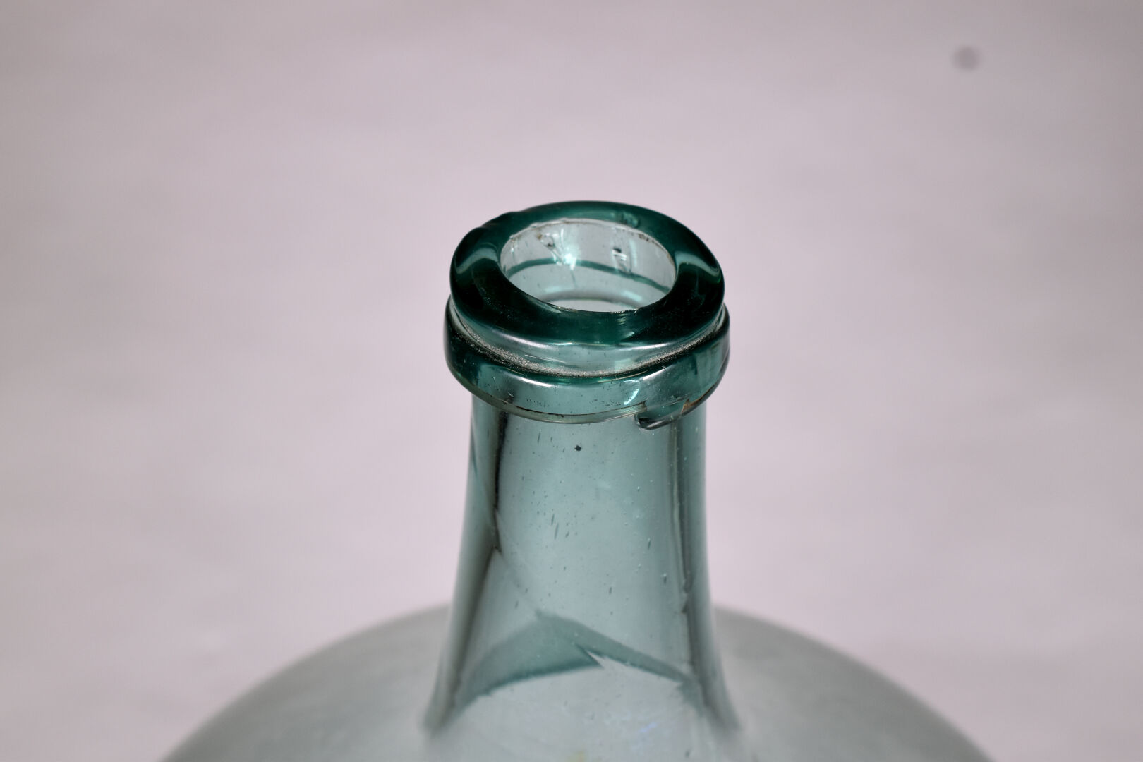 Dame Jeanne en verre légèrement bleuté. Probablement Grésigne . Haut. : 51 cm.