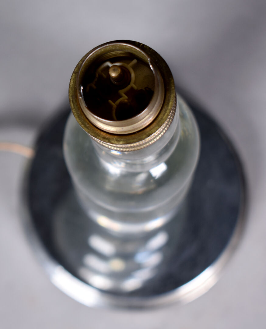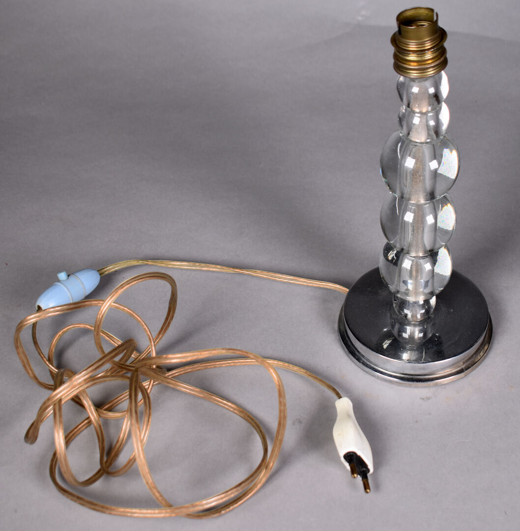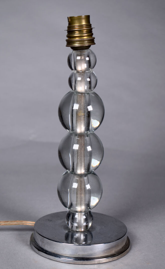 Dans le goût d’Adnet. Lampe à poser, le fût à 5 sphères de cristal. Milieu du XXe siècle. Haut. : 25,5 cm.