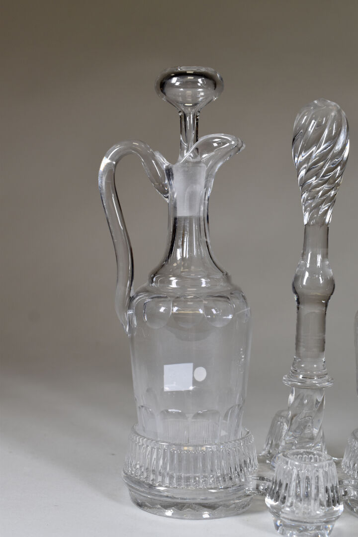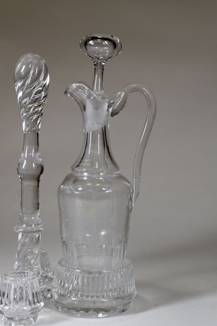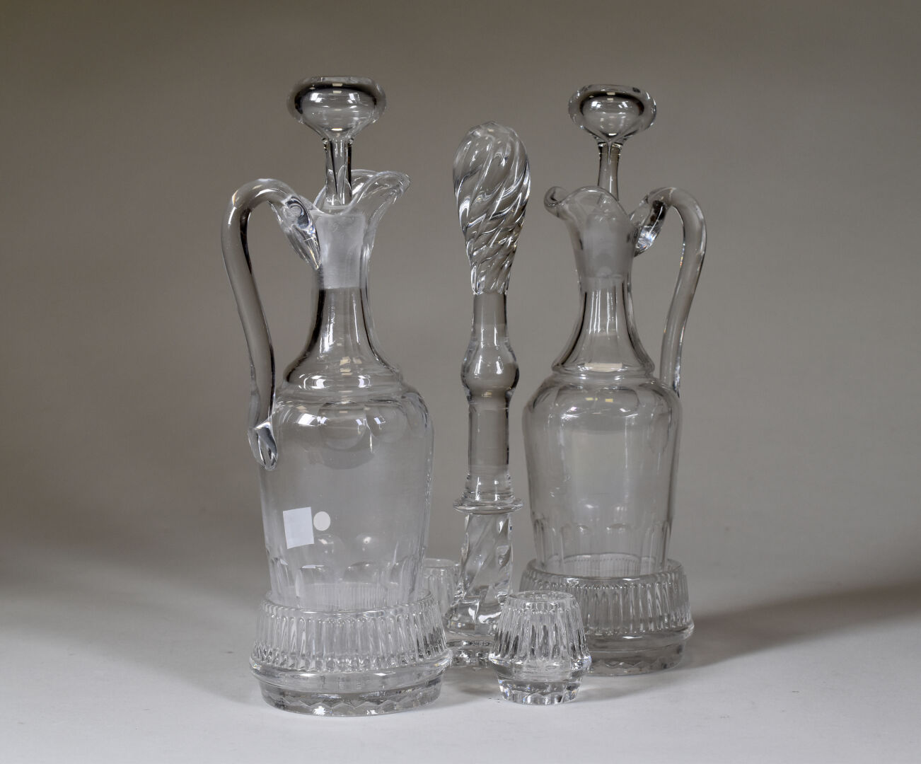 Dans le goût de BACCARAT ou SAINT LOUIS. Huilier vinaigrier en cristal moulé. Haut. : 26 cm.
