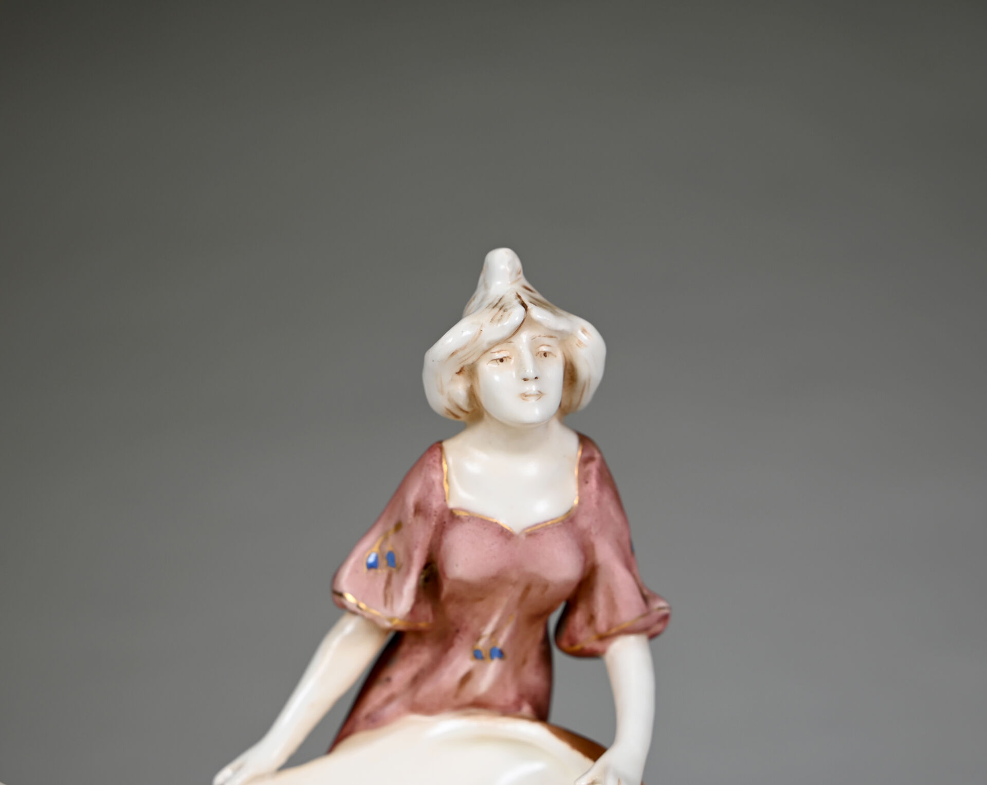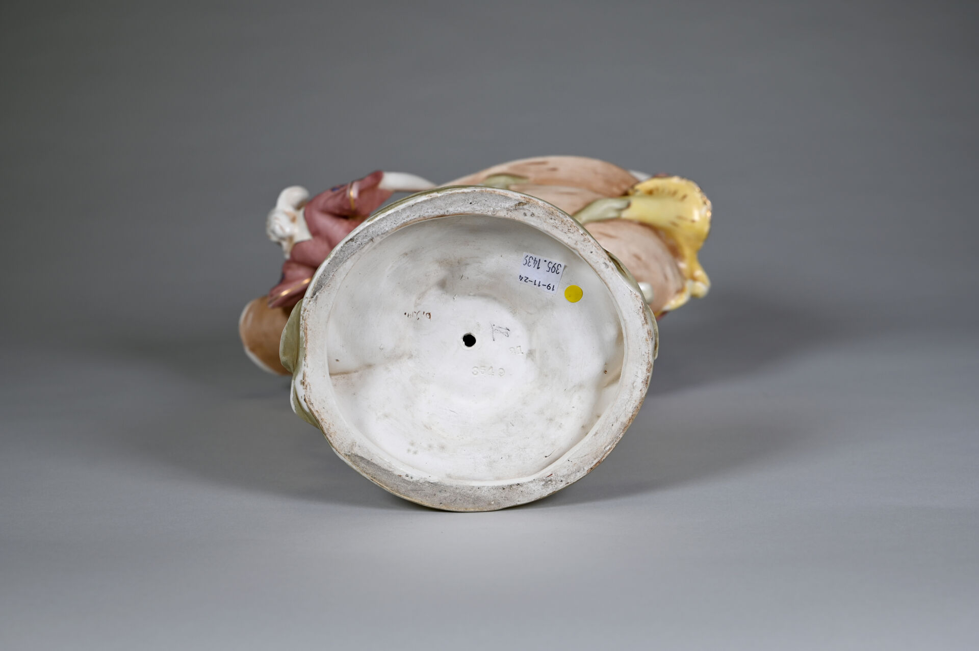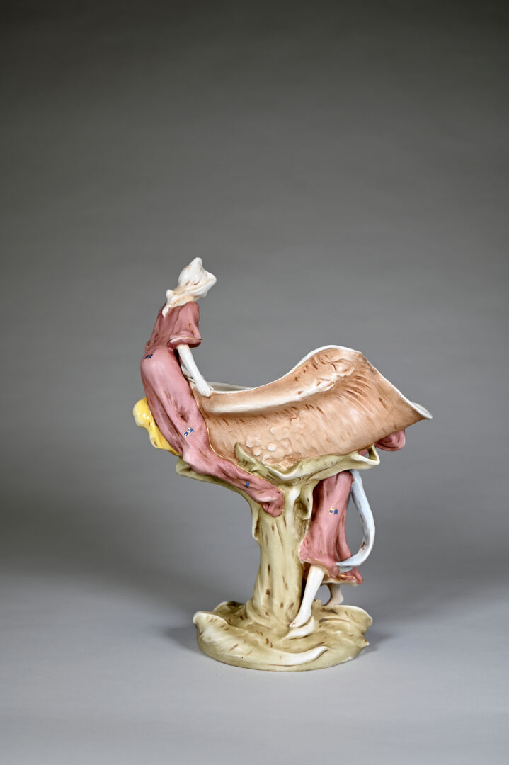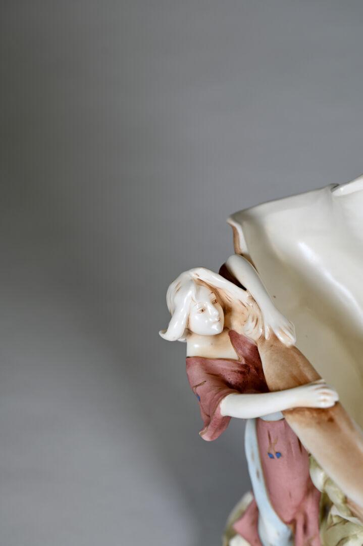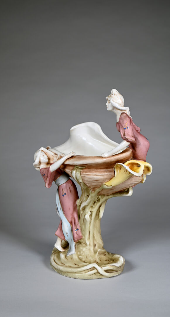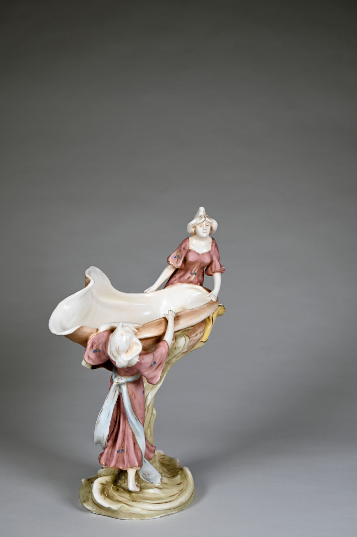 Dans le goût de ROYAL DUX. Vase flori-forme à décor de deux nymphes habillées dans le goût japonais. Travail Art nouveau. Non marqué. Haut. : 40 cm.